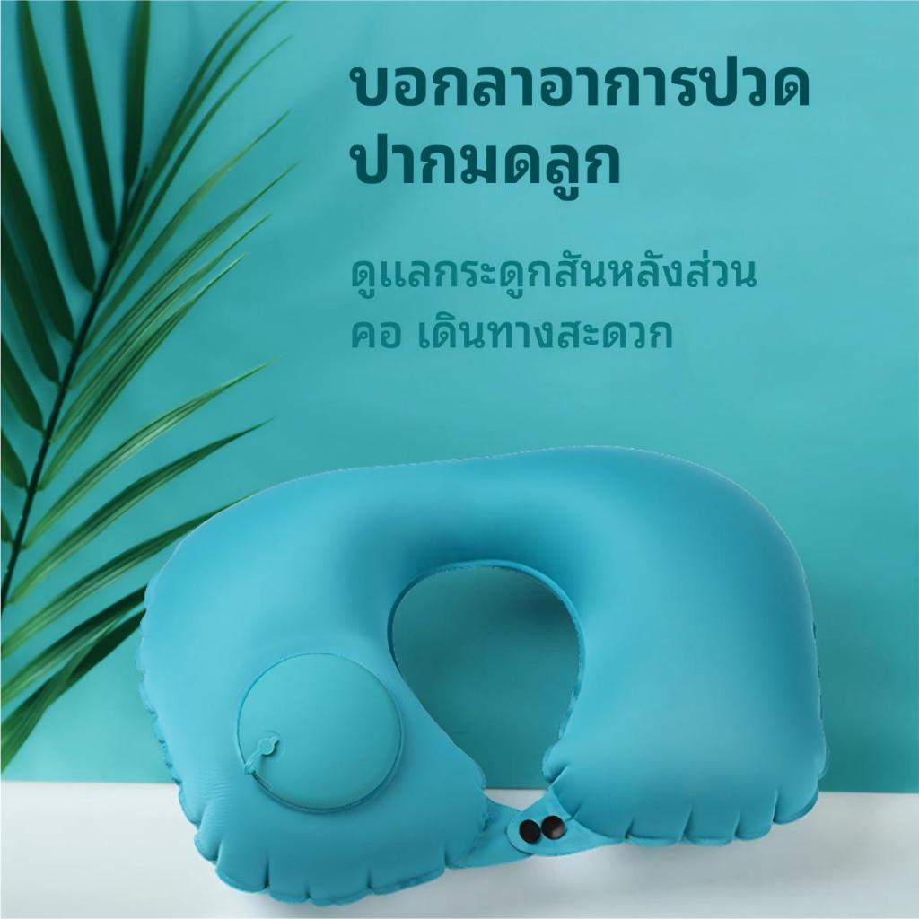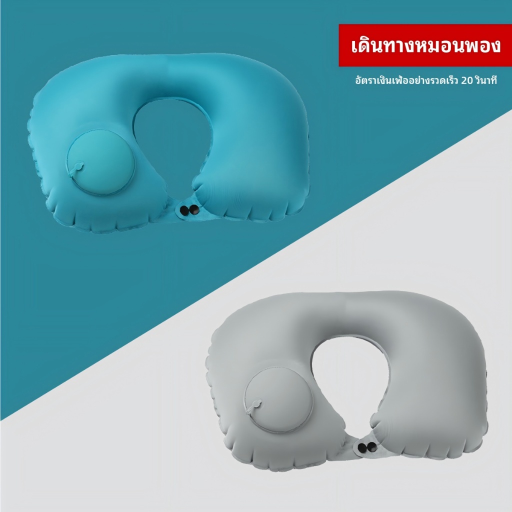 หมอนรองคอแบบเป่าลม กดปุ่มอัดอากาศ พับได้ พกพาสะดวก หมอนรองคอแบบตัวยู