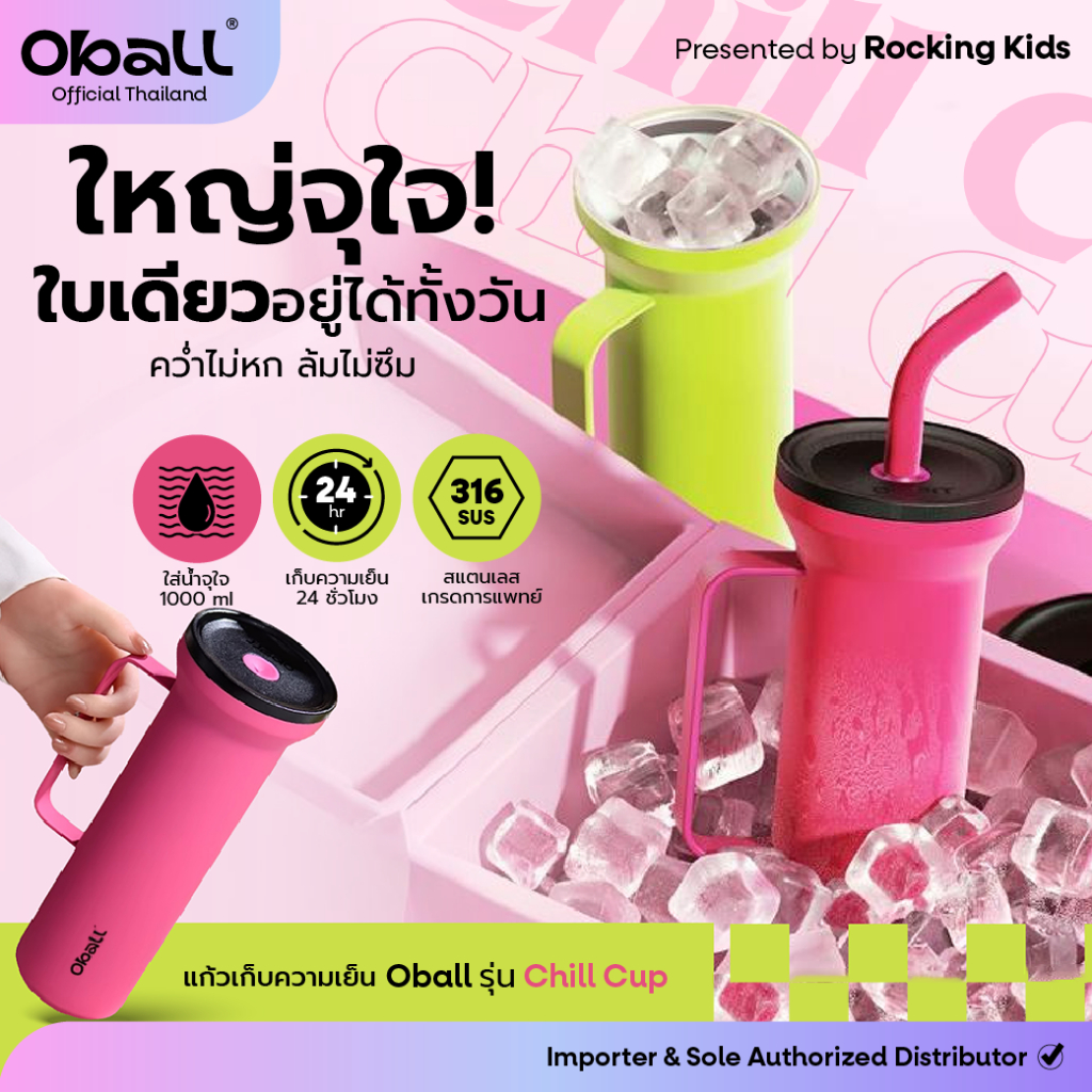 Oball รุ่น Chill Cup แก้วน้ำเก็บอุณหภูมิ เก็บความเย็นนาน 24 ชม. ความจุ 1000 มล.