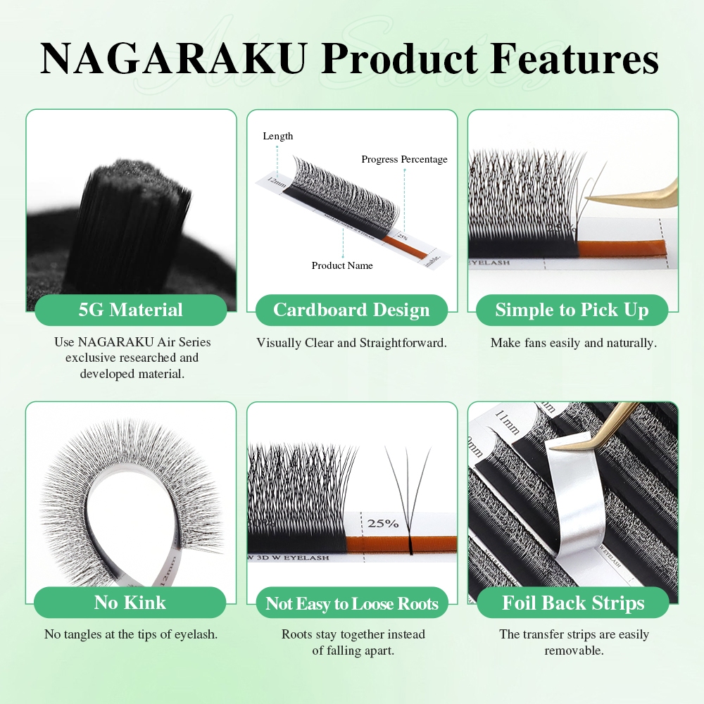 NAGARAKU แคบ W รูปร่าง 3D Eyelash Extensions ขนตานุ่มธรรมชาติ Smaller Spacing