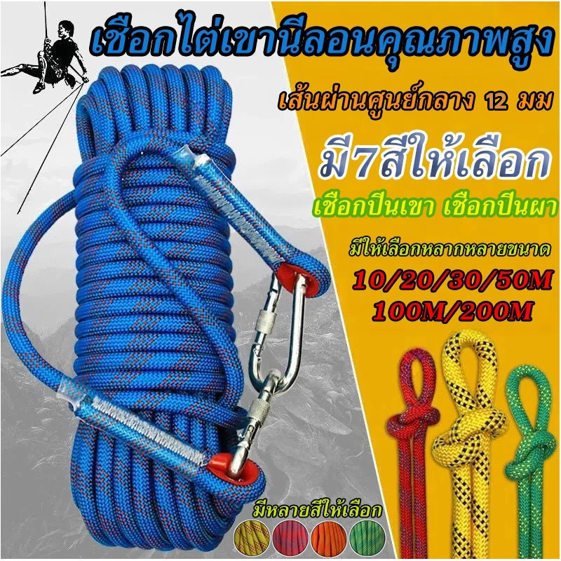 เชือกปีนเขา อุปกรณ์ปีนเขา เชือกโรยตัว 12 มม. ปีนหน้าผากลางแจ้งหลบหนีเชือก Climbing Rope เชือกไนล่อน