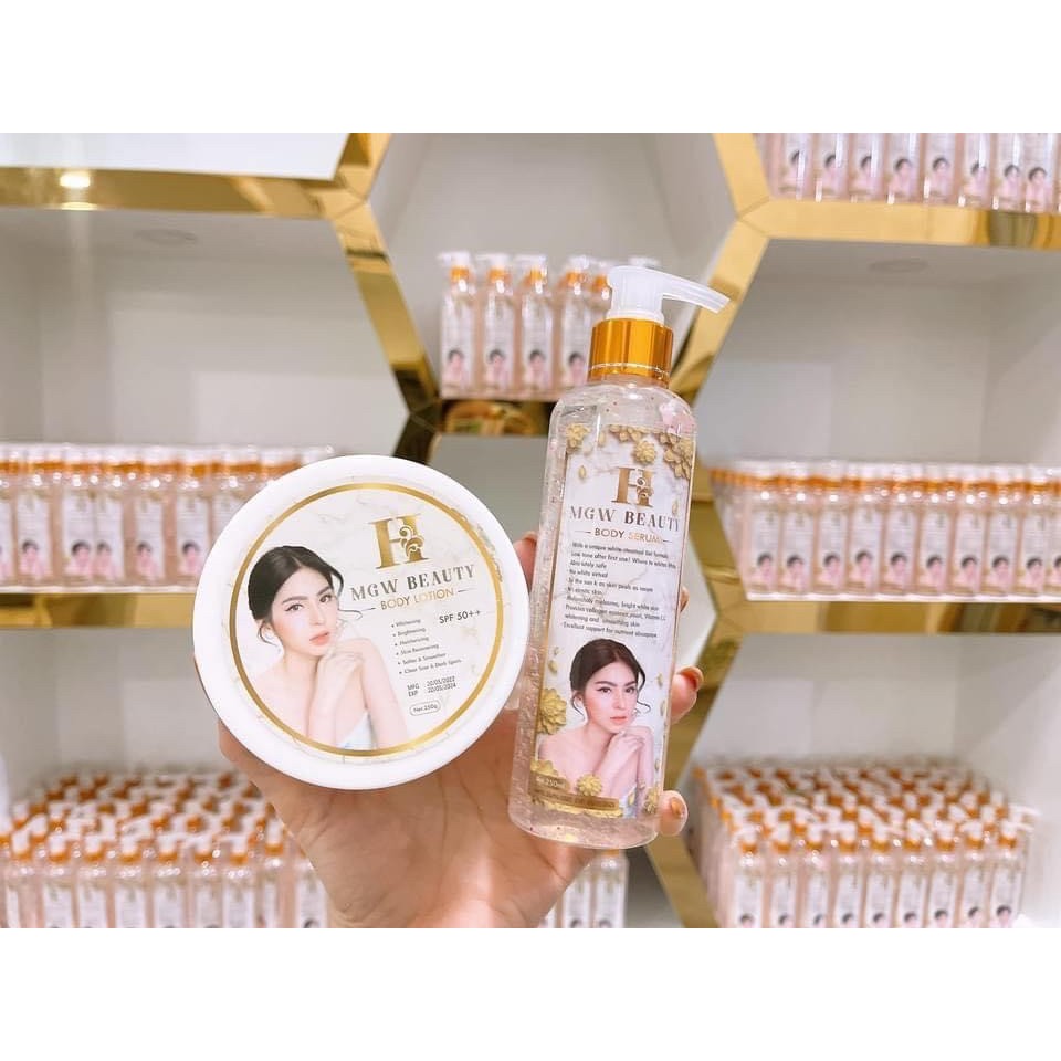 (ผลิตไทย มีเลขจดแจ้ง) ครีมเมจิกไวท์ H MGW Beauty Body Lotion + Serum SPF50