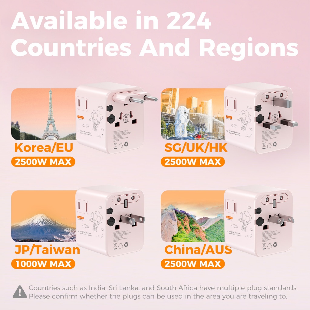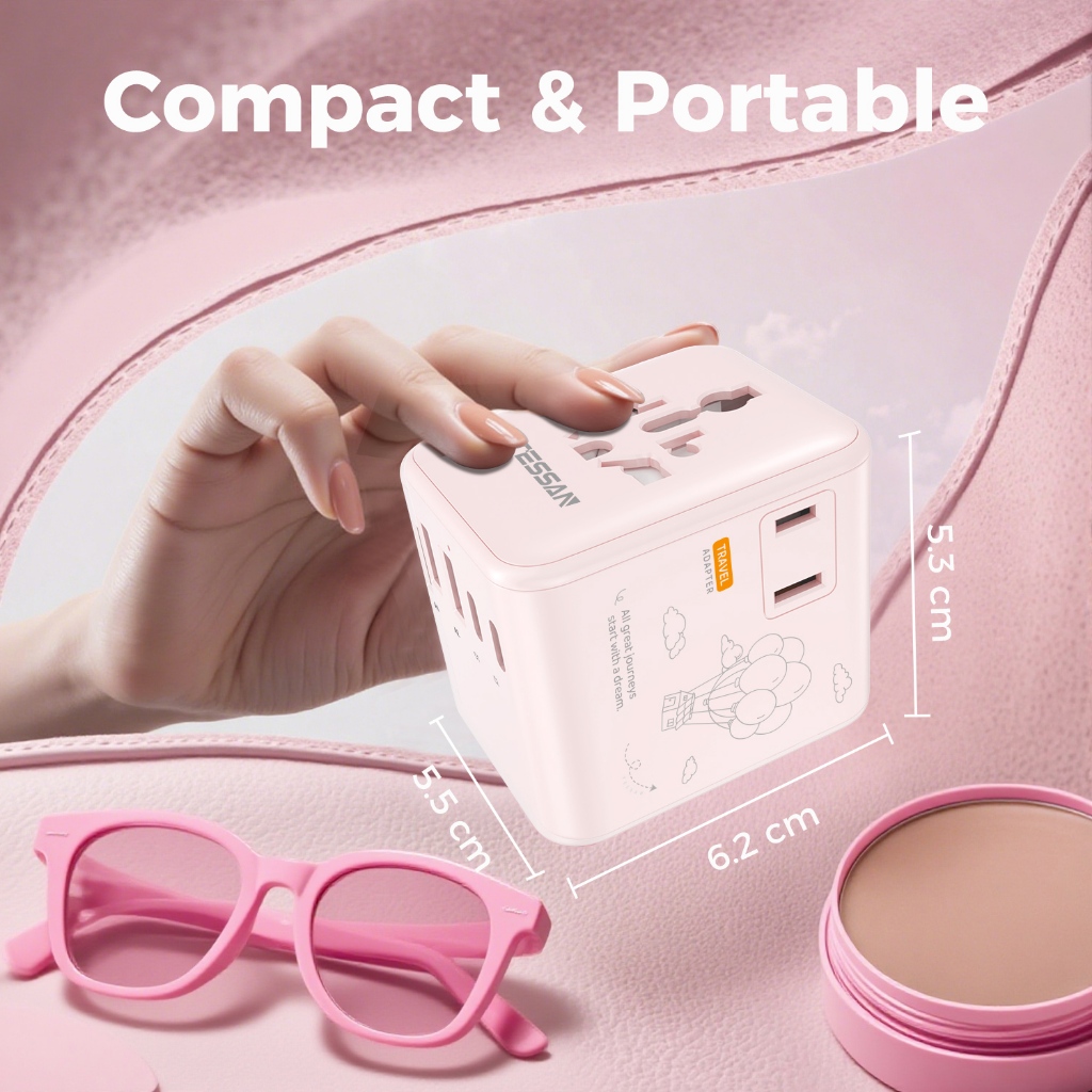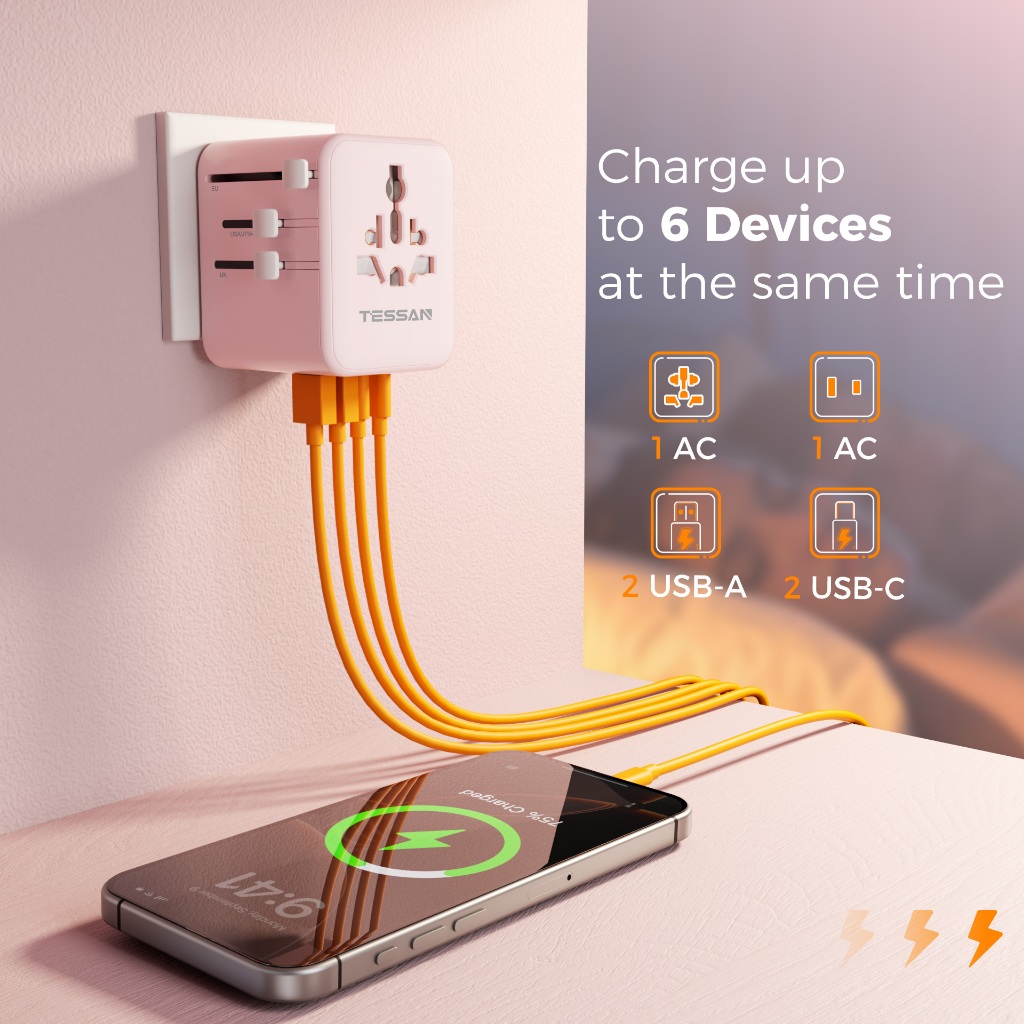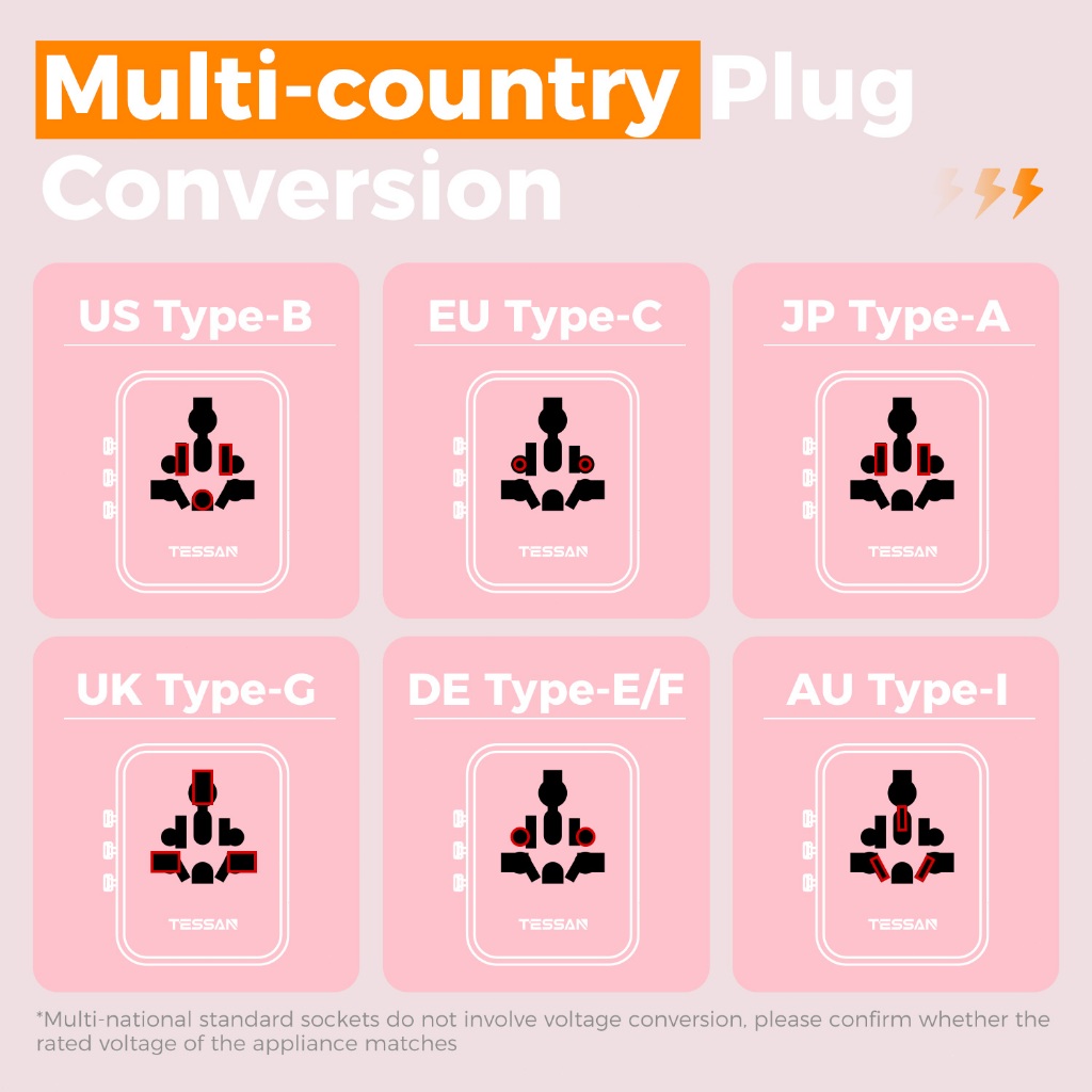 TESSAN อะแดปเตอร์เดินทางสากลพร้อม USB + Type C อะแดปเตอร์ปลั๊กสากลที่จำเป็นสำหรับการเดินทาง