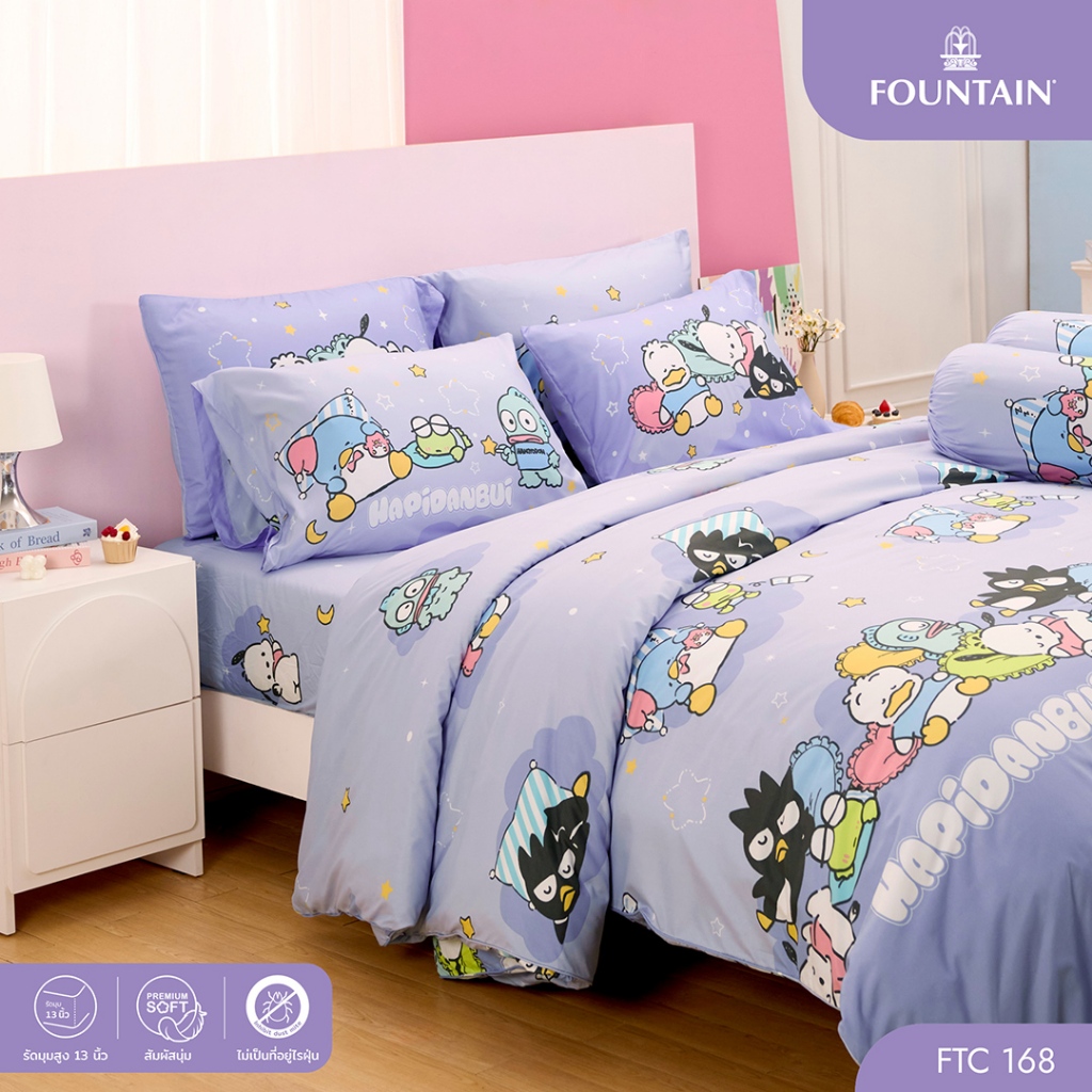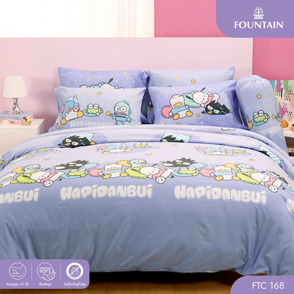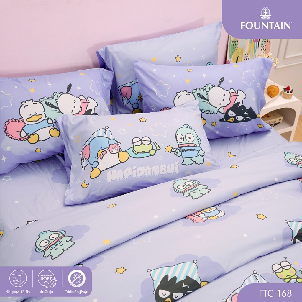 Fountain FTC168 การ์ตูน Hapidanbui ลิขสิทธิ์แท้ Sanrio สัมผัสนุ่มลื่น ชุดเครื่องนอนฟาวน์เทน ผ้าปูที่นอน ผ้านวม