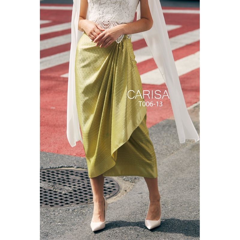 Carisa ผ้าถุง ตัดสำเร็จ กระโปรงผ้าไหมเทียม จับจีบด้านหน้าเพิ่มลูกเล่น เนื้อผ้านิ่ม ใส่สบาย ตะขอปรับเข้า-ออกได้ [T006]