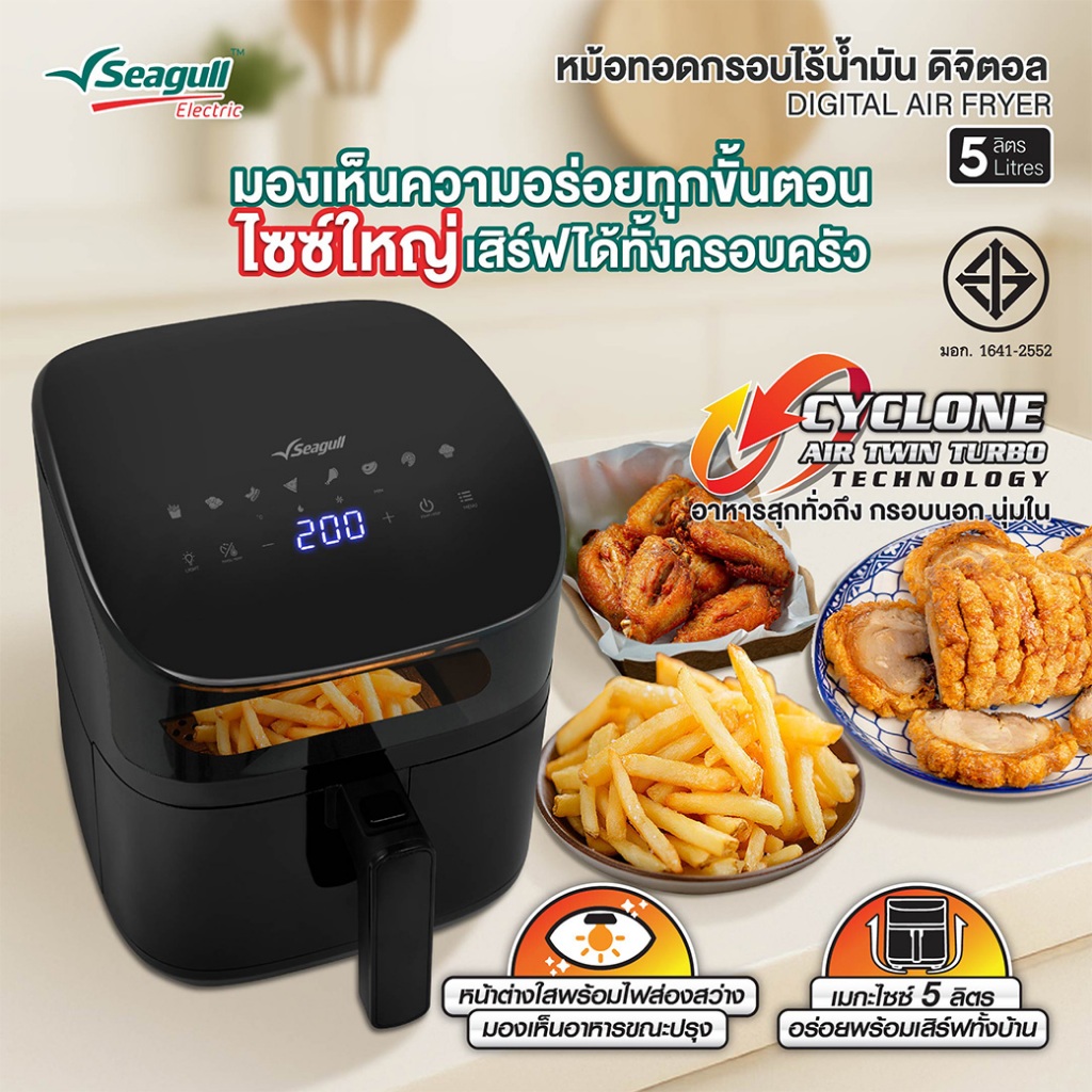 Seagull หม้อทอดกรอบไร้น้ำมัน ดิจิตอล ขนาด 5 ลิตร (สีดำ) Digital Air Fryer