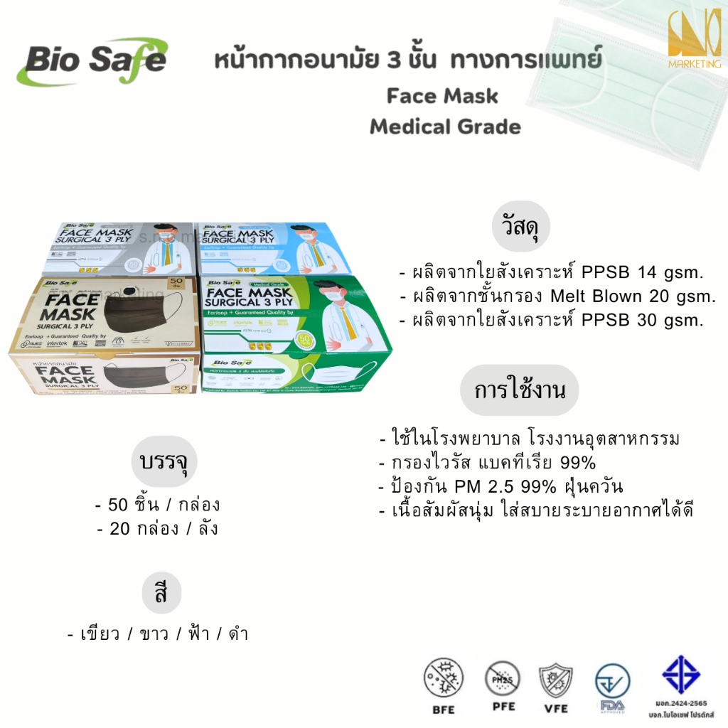 MASK (ยี่ห้อ Bio Safe) (ยกลัง 20 กล่อง)