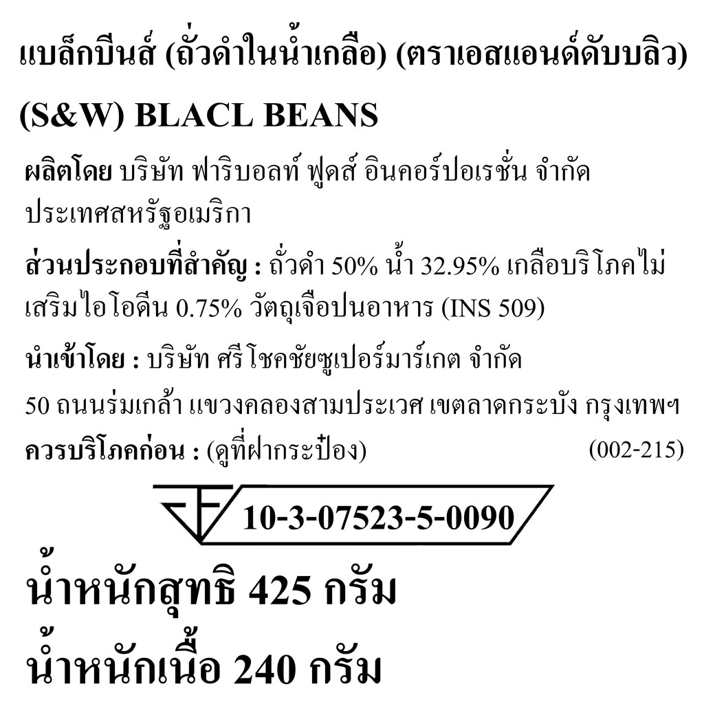 เอสแอนด์ดับบลิว ถั่วดำในน้ำเกลือ (15 ออนซ์) 425 กรัม S&W Black Beans (15 Oz.) 425 g.