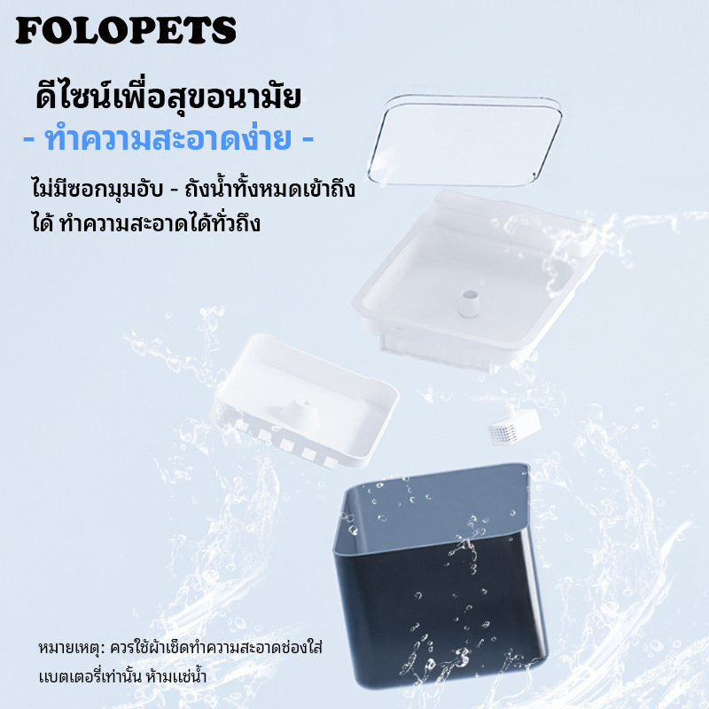 FOLOPETS ที่ให้น้ำสัตว์เลี้ยงอัตโนมัติ ไร้สาย Smart Pet Drinking Water Dispenser 3L น้ำพุแมว ที่ให้น้ำสุนัข(ผ่านไส้กรอง)