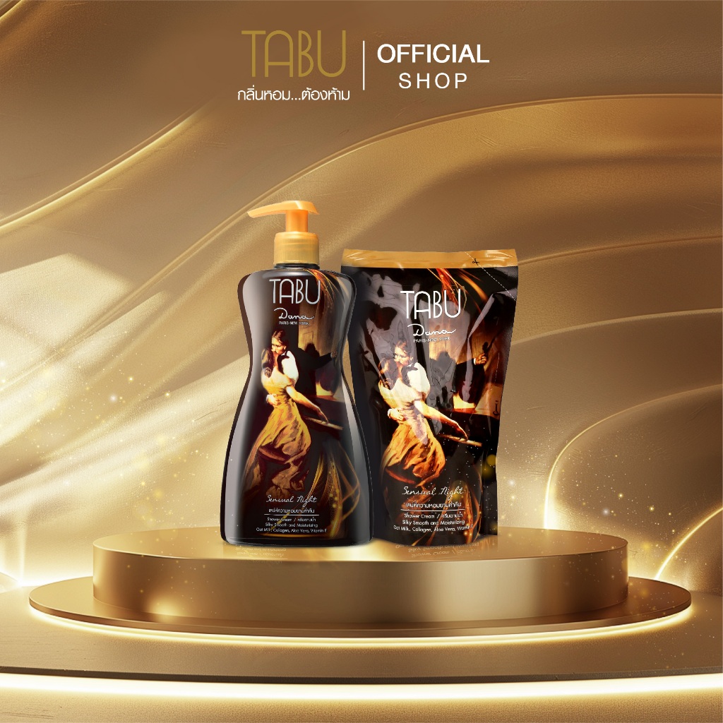 (EXP. 29.04.2570) Tabu ตาบู ครีมอาบน้ำ ซิลกี้สมูท แอนด์ มอยส์เจอร์ไรซิ่ง ขนาด 500 ml.+ ถุงเติม 400 ml. (โปร1แถม1)