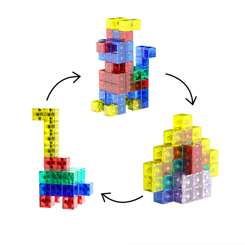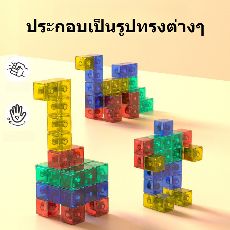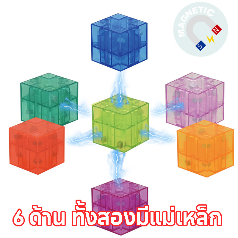 BHQ บล็อกอาคารแม่เหล็ก แม่เหล็กทั้ง 6 ด้าน สี่เหลี่ยมจัตุรัส 2.1*2.1*2.1cm ใส/สีทึบ ของเล่นเด็ก