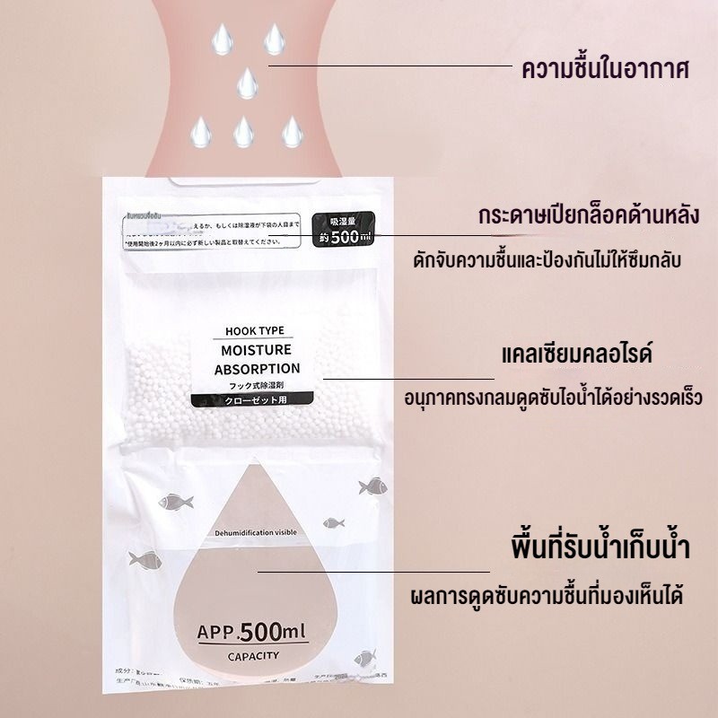 ถุงดูดความชื้น 1/3 แพ็ค ดูดกลิ่นอับ ลดความชื้น กันกลิ่นอับและเชื้อราในตู้เสื้อผ้า แขวนได้ ใช้งานสะดวก 500ML