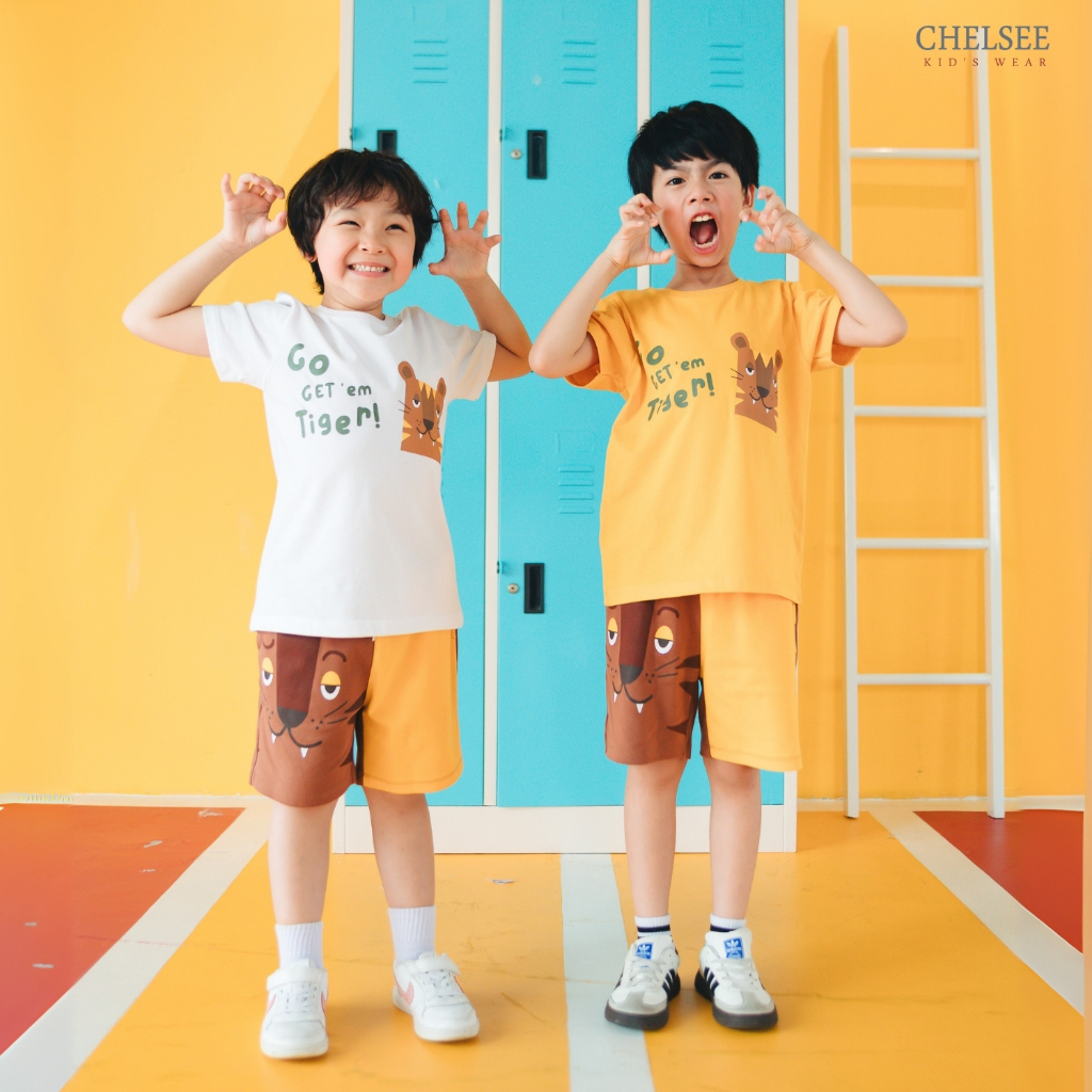Chelsee เสื้อยืดคอกลม แขนสั้น ลายเสือ Tiger ผ้า 100%Cotton เด็กผู้ชาย อายุ 1.5-10 ปี เสื้อผ้าเด็กโต รุ่น 128176