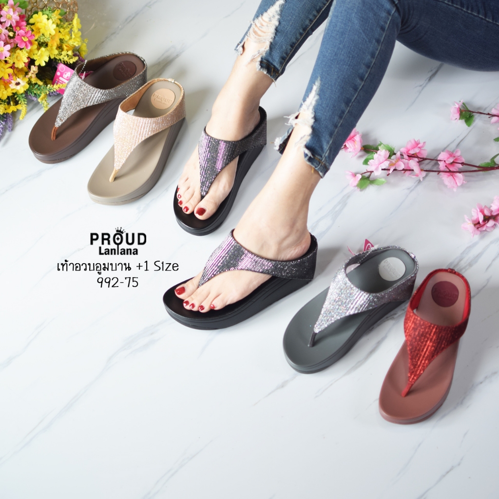 992-75 รองเท้าเสริมส้นสูง2.5นิ้ว หน้าสามเหลี่ยมกลิตเตอร์ (เท้าอวบอูม+1ไซส์)