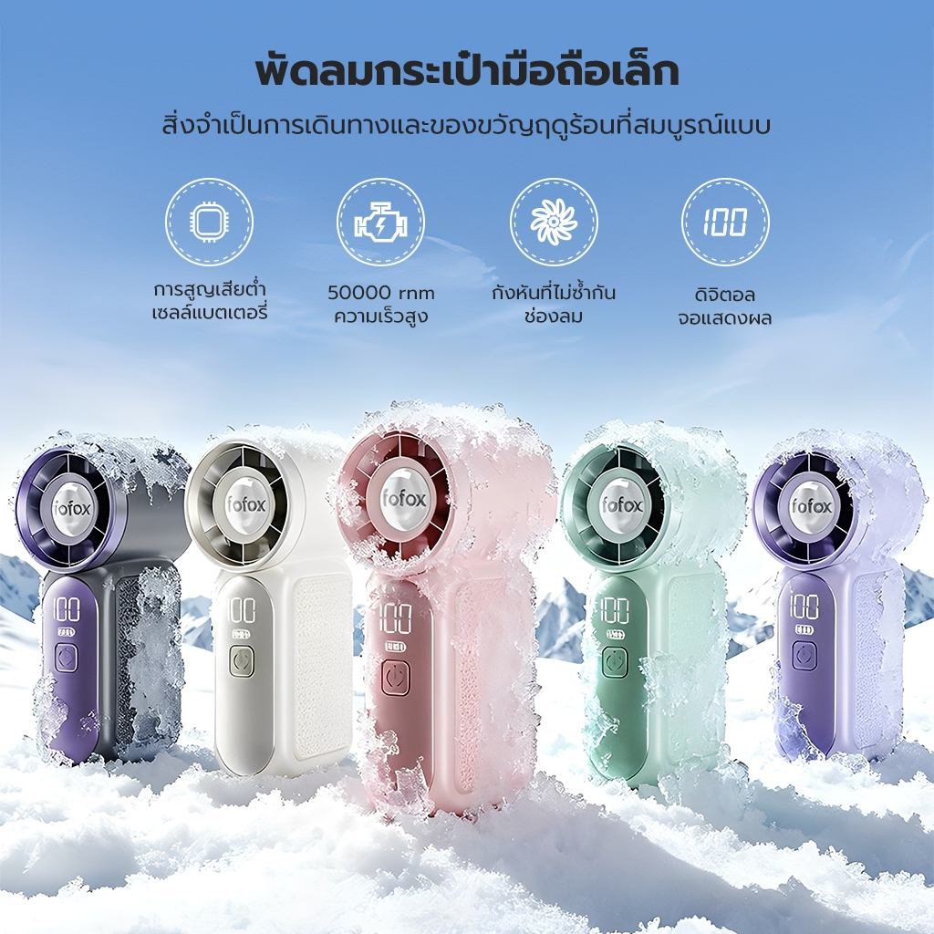 fofox HF13 พัดลมพกพา พลังลมทะลุเกณฑ์พายุ พัดลมไอเย็น ชาร์จใหม่ได้ ใช้งานได้ 20 ชม น้ำหนักเพียง 107 กรัม
