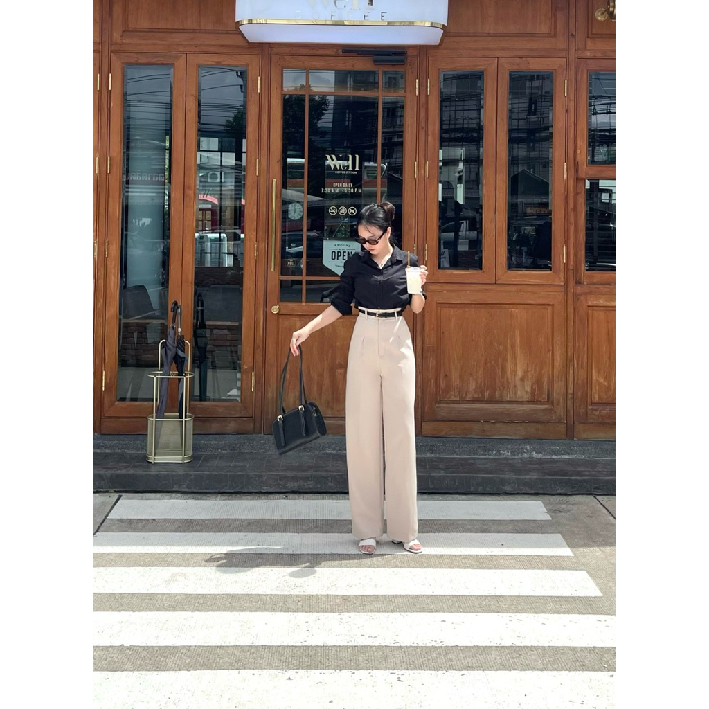 KARIn กางเกงขายาวผู้หญิง รุ่น ORA Signature Wide กางเกงขากระบอกใหญ่ กางเกงทำงาน [ผ้าเปเป้]