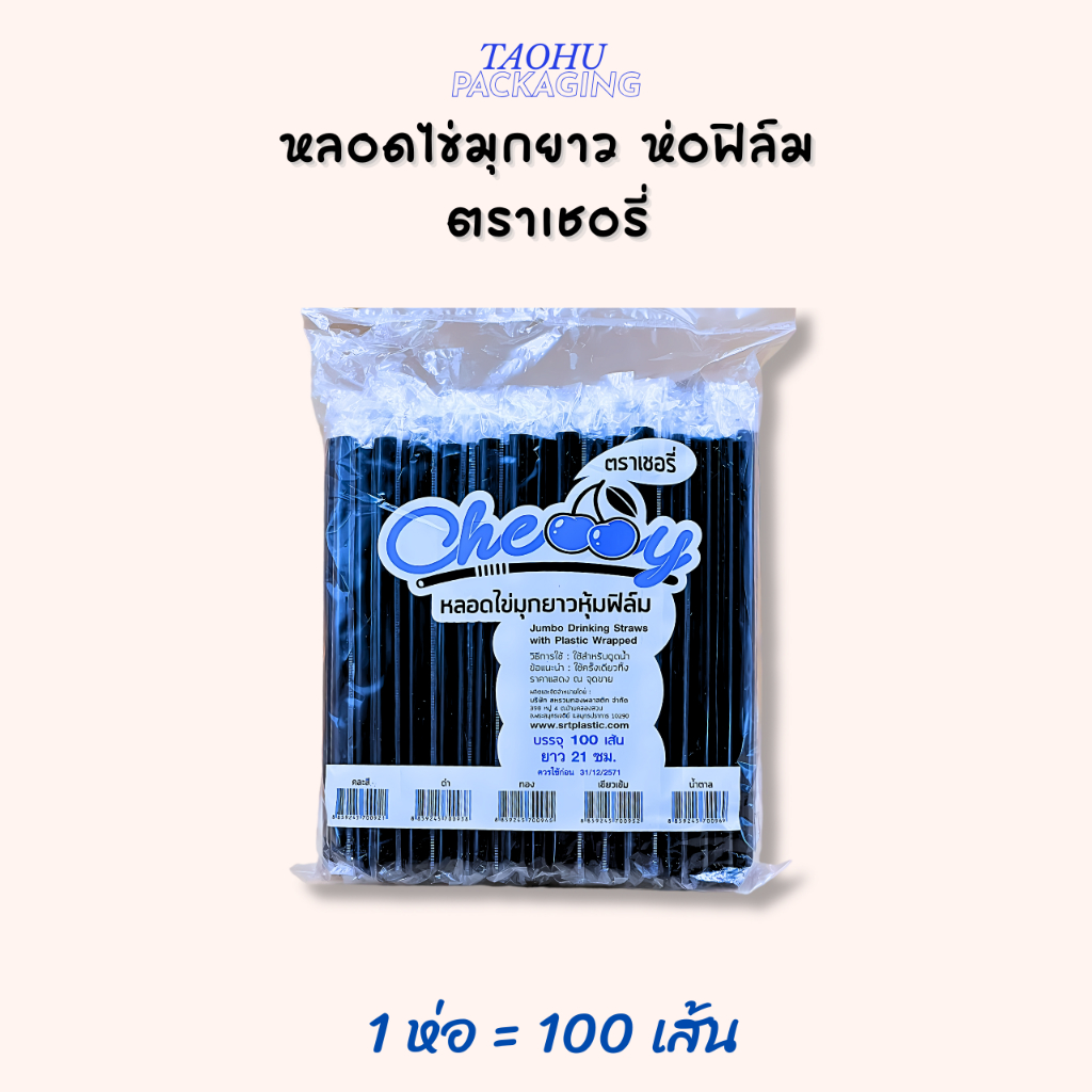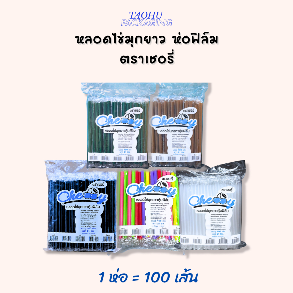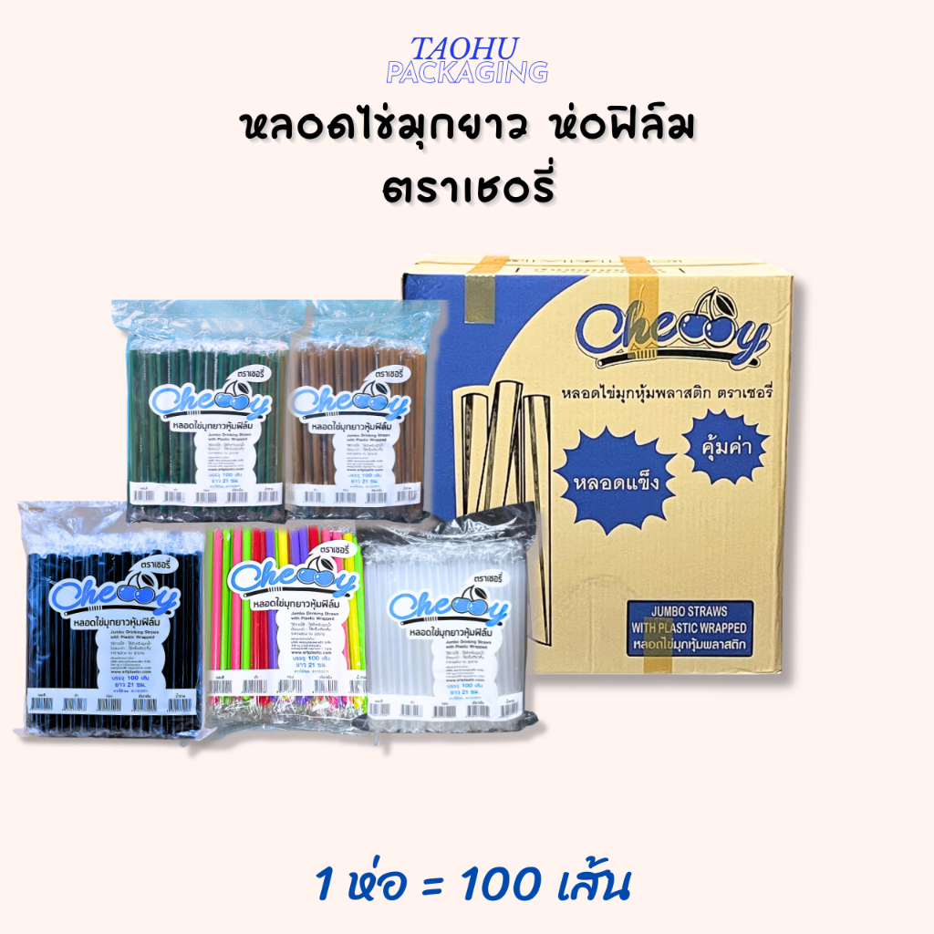 [ยกลัง 20 ห่อ] หลอดไข่มุกยาว ห่อฟิล์ม (มีหลายสี) ตราเชอรี่ ## รบกวนลูกค้าสั่ง 1 ลัง ต่อ 1 ออเดอร์นะคะ ##