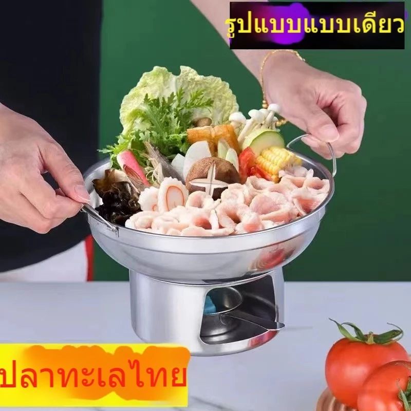 หม้อไฟสแตนเลส รุ่นหนา หม้อต้มยำ หม้อจิ้มจุ่ม พร้อมช่องใส่แอลกอฮอล์อุ่นอาหาร มีให้เลือกหลายขนาด