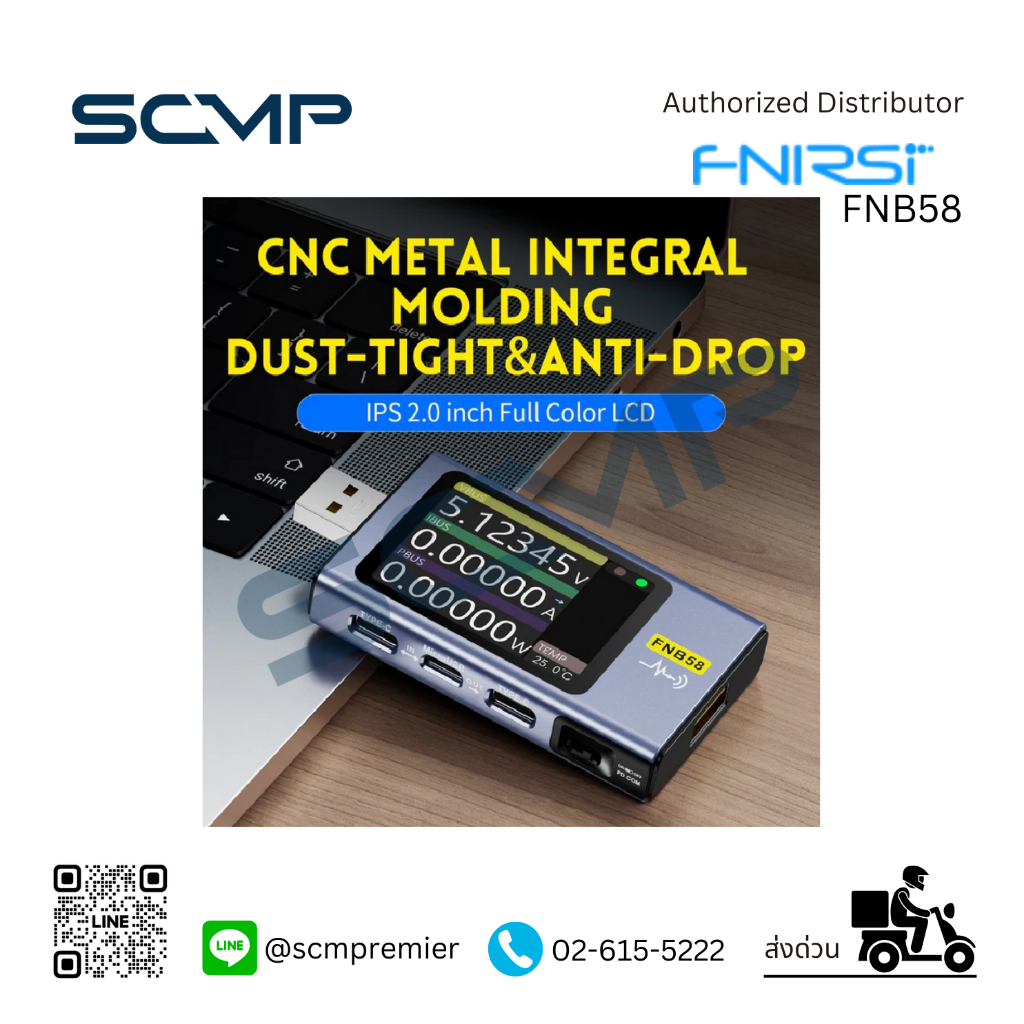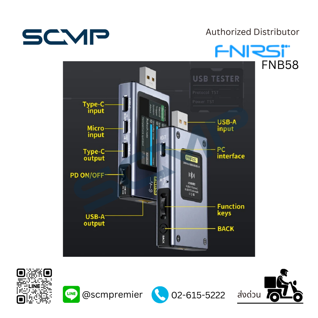 เครื่องทดสอบพอร์ต USB/ดิจิตอล FNIRSI FNB58 BT, 196W, QC3.0, PD, Bluetooth
