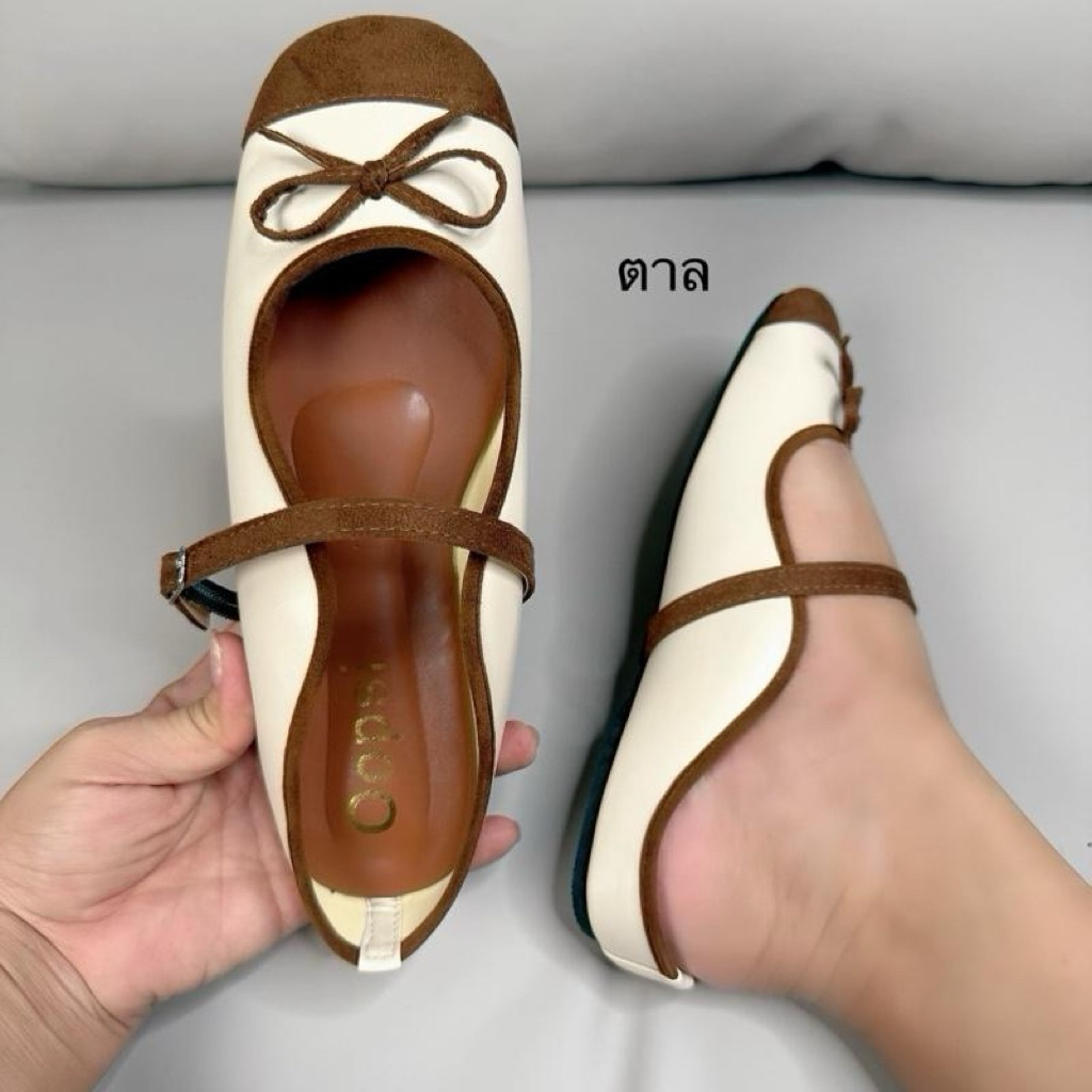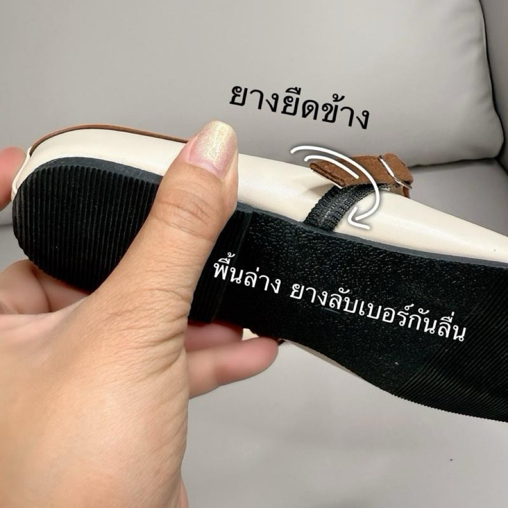 รองเท้าแมรี่เจนMary Jane เปิดส้นหนังนุ่มสีขาวนม ตัดด้วยหนังกลับ รุ่น K-8038 (ไซซ์ 36-45)