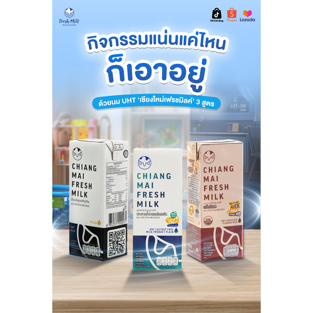 Mall นมเชียงใหม่เฟรชมิลค์ ยกแพ็ค (4กล่อง/แพ็ก) 180 ml Chiangmai Freshmilk UHT นมโคแท้100%