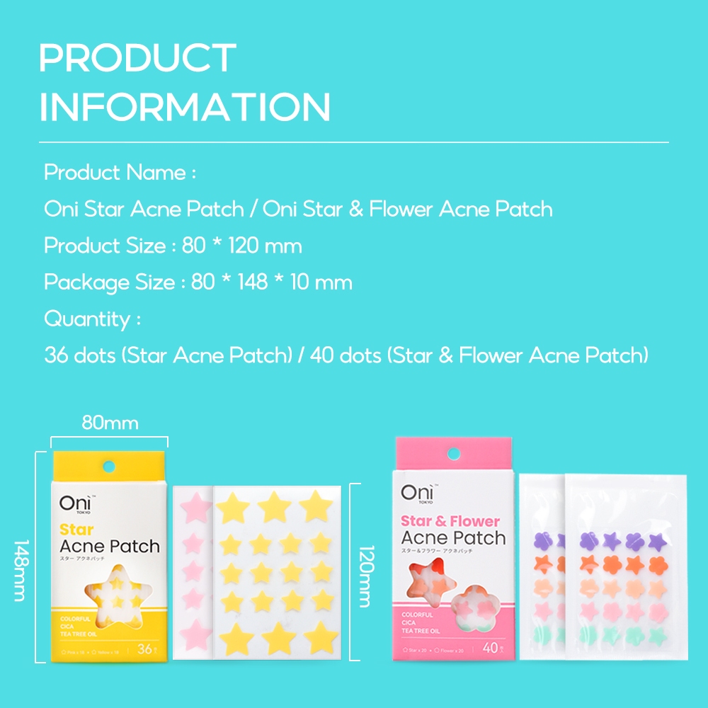 Oni Star Pimple Patches for Face Cute Acne Dots Colorful Spot Stickers ทาเครื่องสำอางทับได้ แผ่นแปะสิว