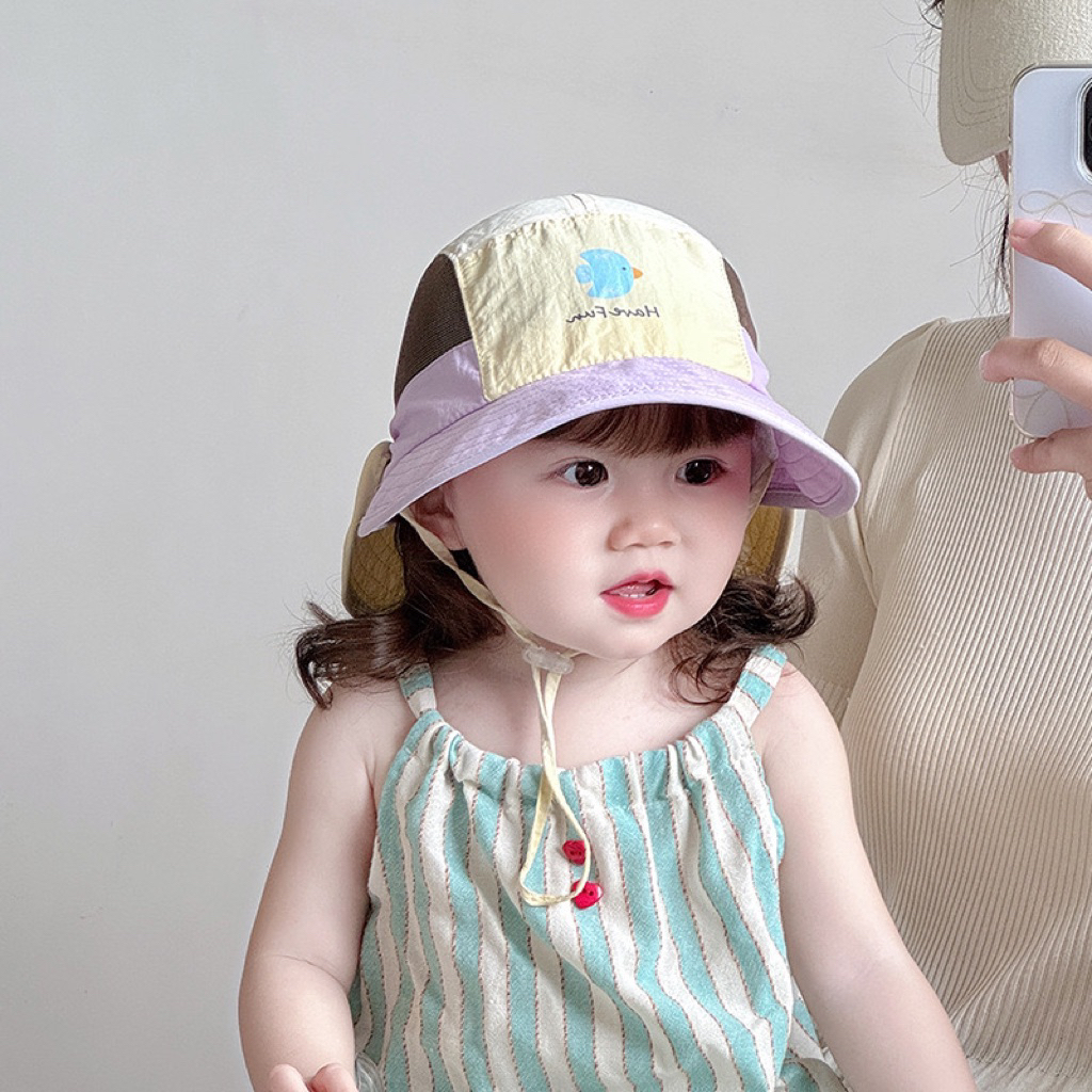 [มาใหม่]หมวกเด็กกันแดดปีกกว้างสุดน่ารัก ป้องกันแสงแดด สีสดใส