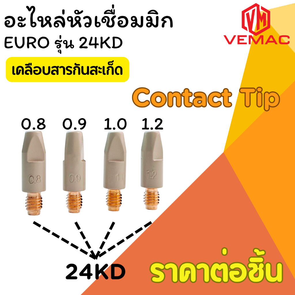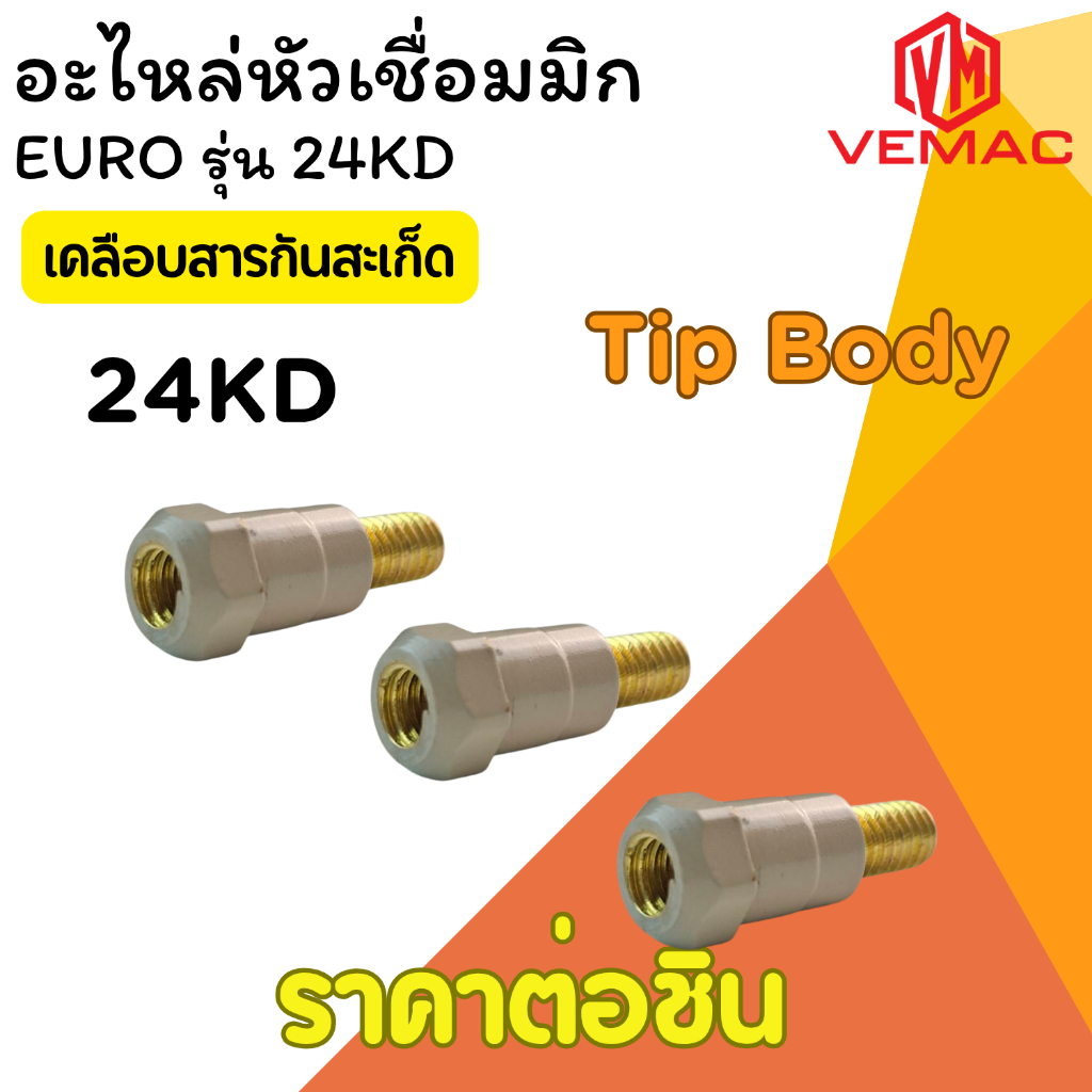 อะไหล่หัวเชื่อมมิก ชนิดเคลือบสารป้องกันสะเก็ดไฟเชื่อม Gas nozzle copper ราคาต่อชิ้น EURO รุ่น 24KD