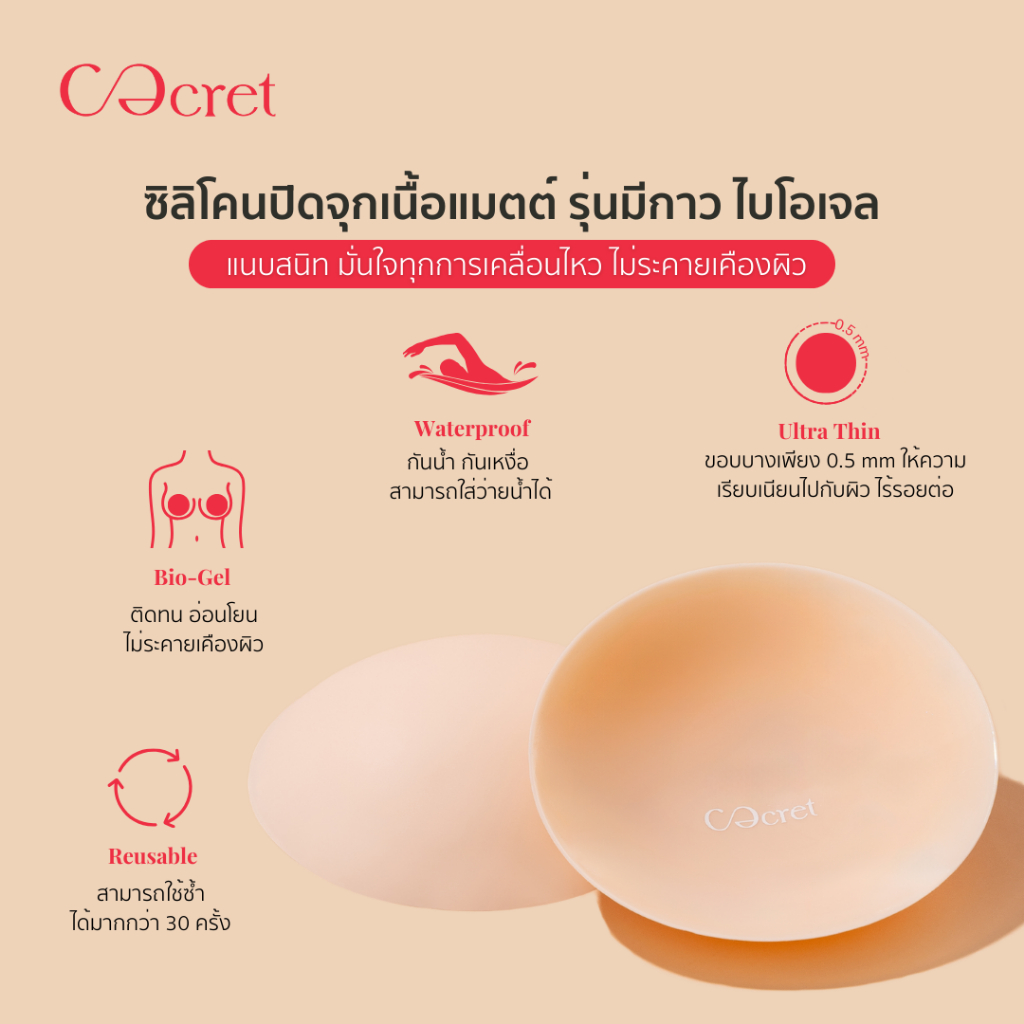CECRET SET ซิลิโคนปิดจุก ที่ปิดจุก เนื้อแมตต์ แบบมีกาว สูตรไบโอเจล อ่อนโยน ไม่ระคายเคืองต่อผิว