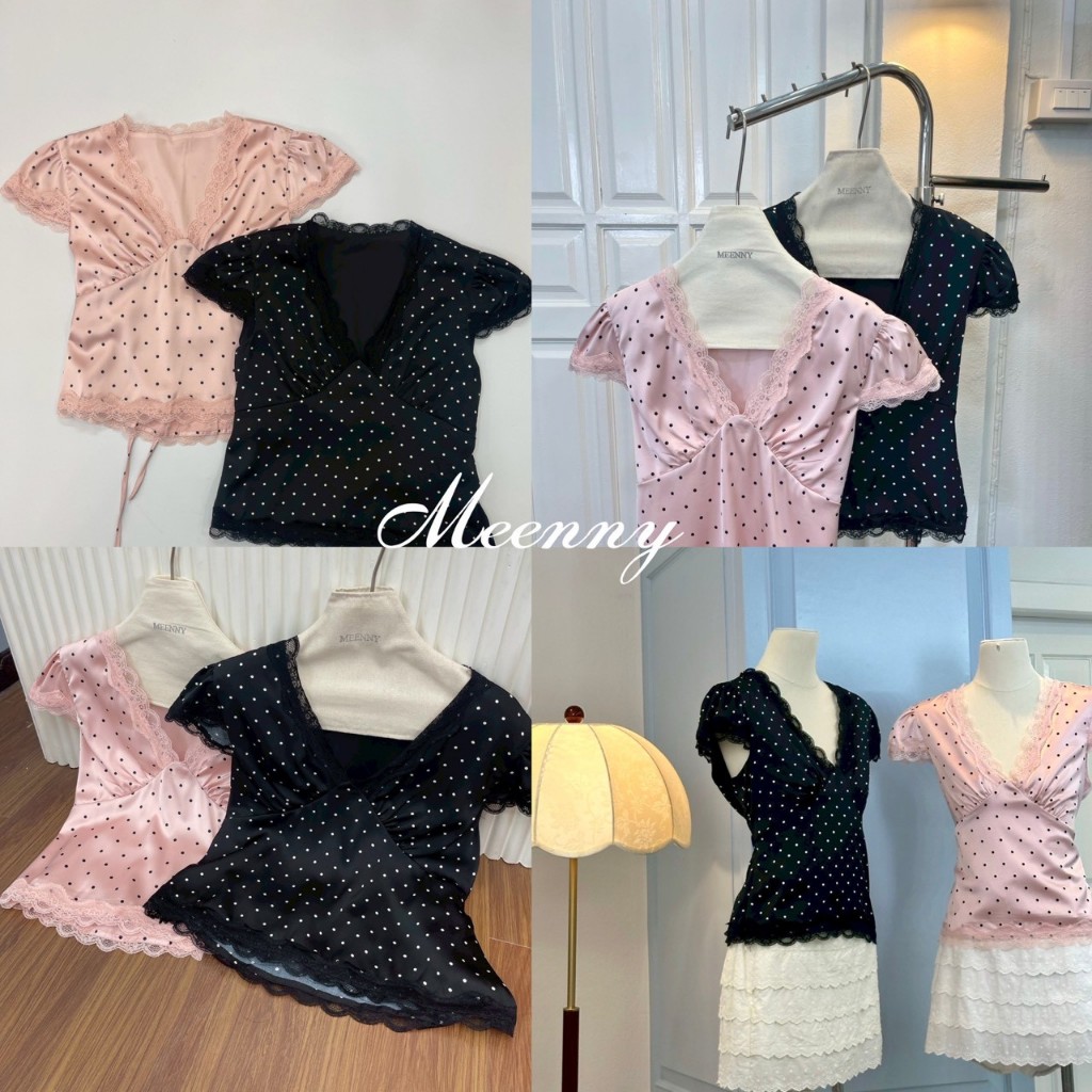 Meenny Closet | NN02 (มีSize) เสื้อน่ารักโพากาดอทเเต่งลูกไม้ MEENNY