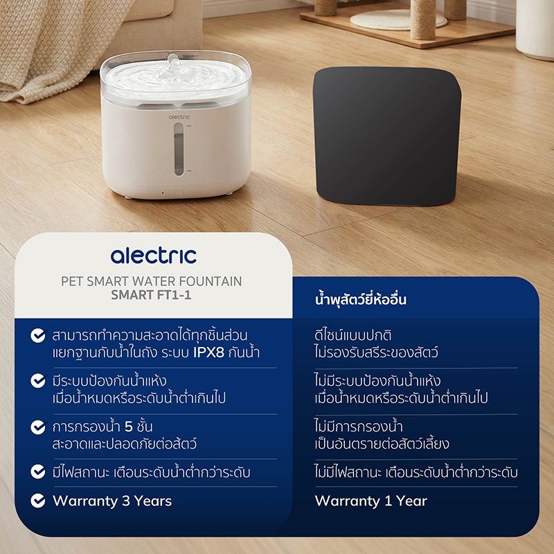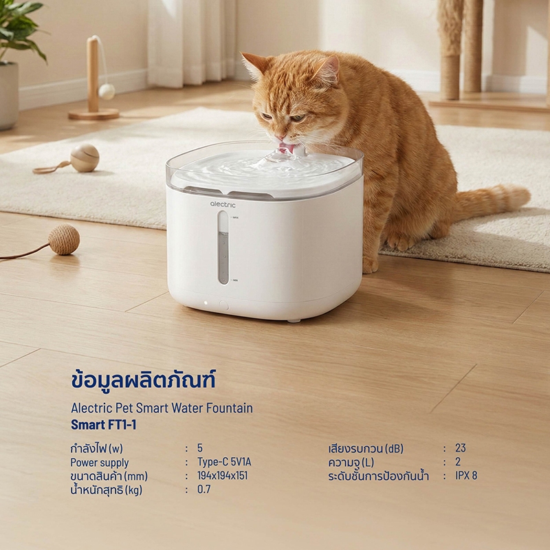 Alectric Pet Smart Water Fountain น้ำพุสัตว์เลี้ยงอัจฉริยะ 2L รุ่น FT1-1 รับประกัน 3 ปี