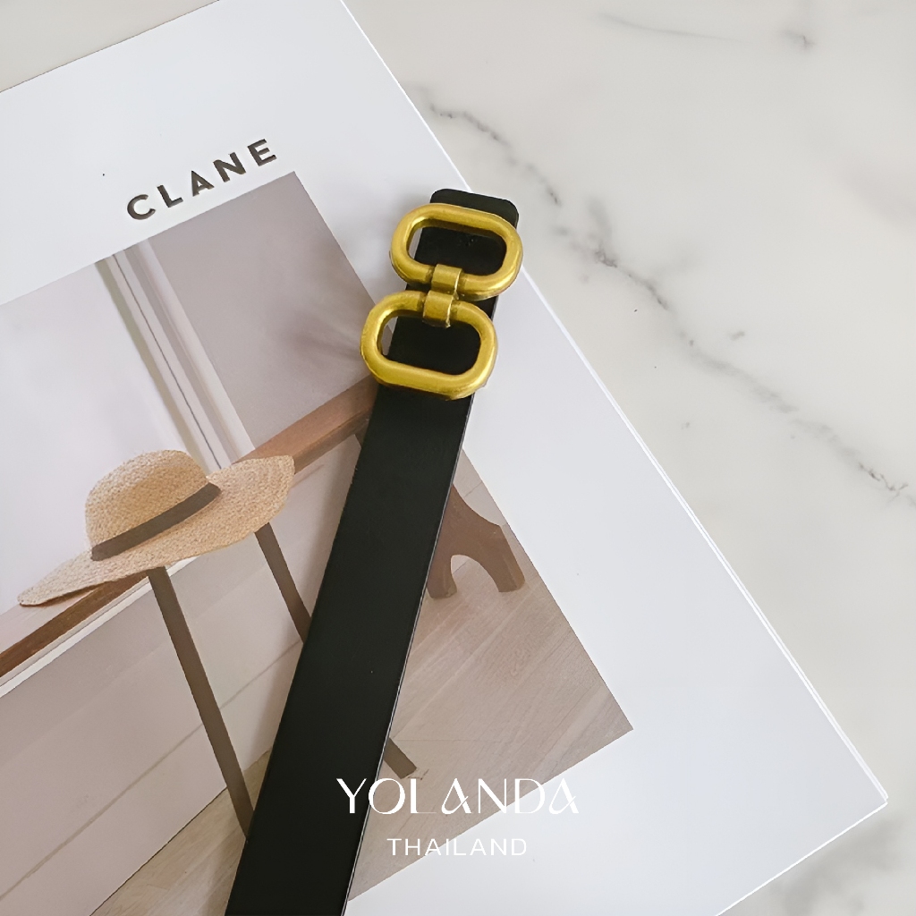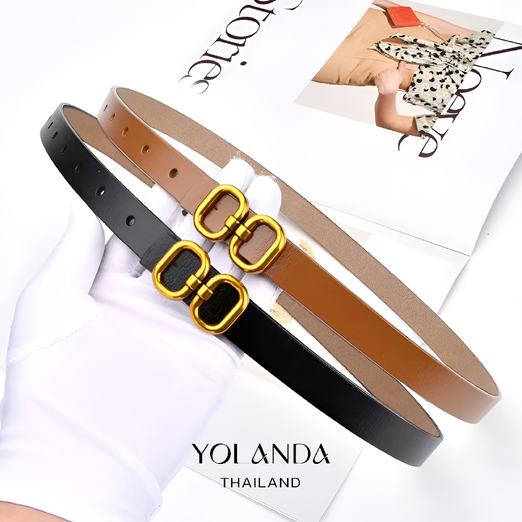 Yolanda เข็มขัดหนังหัวทองคู่ เข็มขัดแฟชั่น ตัวสายเป็นหนังนื่ม ดีไซน์เรียบหรู ใส่ได้ทั้งผู้ชาย ผู้หญิง แมทต์ง่าย FF1613