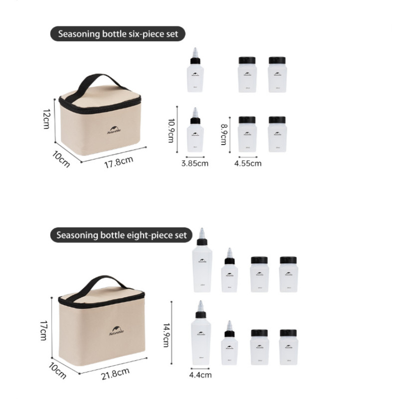Naturehike อุปกรณ์ตั้งแคมป์บาร์บีคิวกลางแจ้งปิกนิก6/8ชิ้นชุดปรุงรสเครื่องเทศการจัดเก็บขวด อ๋อ พร้อมถุงเก็บ