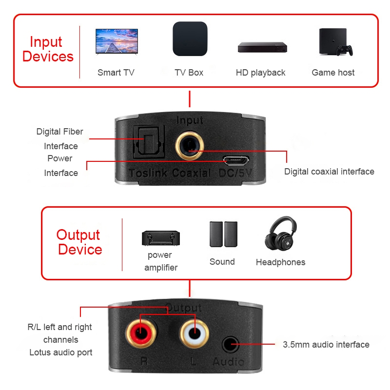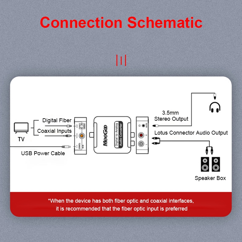MEEGOO Optical Coaxial Toslink digital to Analog Audio Converter SPDIF Optical/Coaxial to RCA 3.5mm สำหรับทีวีต่อลำโพง