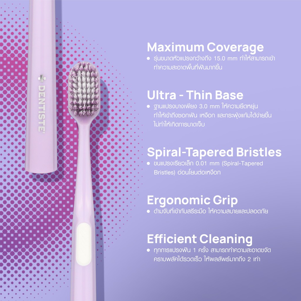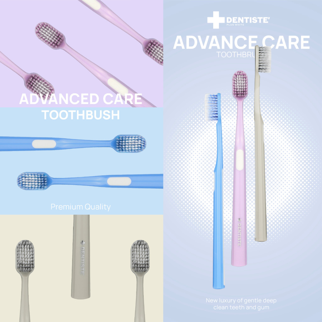 [ใหม่!] Dentiste' Advanced Care & Premium Toothbrush แปรงสีฟันขนนุ่ม 0.01 มม. หัวแปรงกว้างพิเศษ 15 มม. สีม่วง เทา ฟ้า