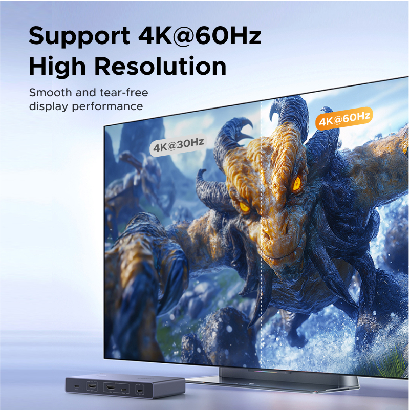 UGREEN USB-C KVM Composite Switch 2-in-1-out,ตู้อลูมิเนียม 4K@60Hz USB 3.0 PD 100W,อินพุต: USB-C + HDMI | เอาต์พุต: HDMI + 3USB-A + 1USB-C