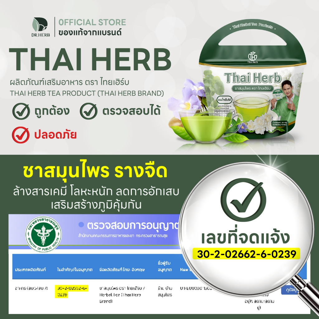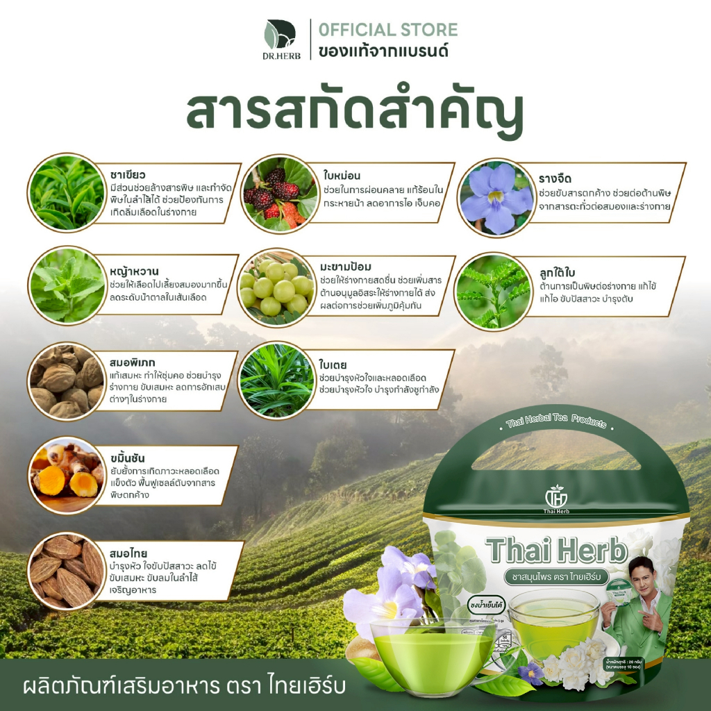 ชาไทยเฮิร์บ รางจืด I ดีท็อกซ์ร่างกาย ขับของเสีย I รสชาเขียวมะลิ I Thaiherb I 1 ห่อ 10 ซองชา