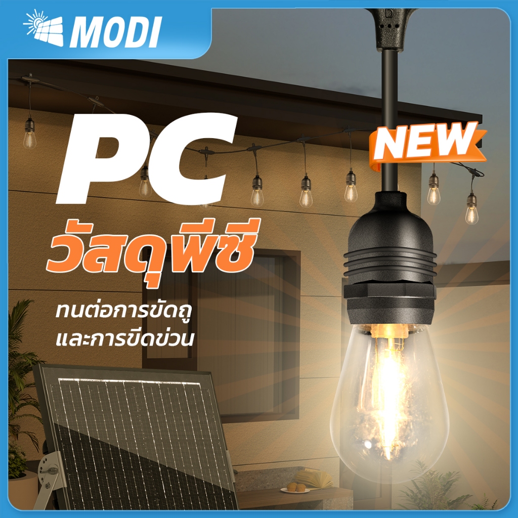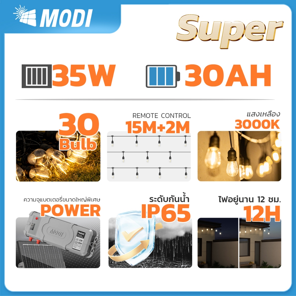 MODI ไฟห้อยระย้าโซล่าเซลล์ 15เมตร30หลอด รุ่นSUPER แสงเหลือง ตกแต่งสวน ปีใหม่ คริสมาส ปาร์ตี้