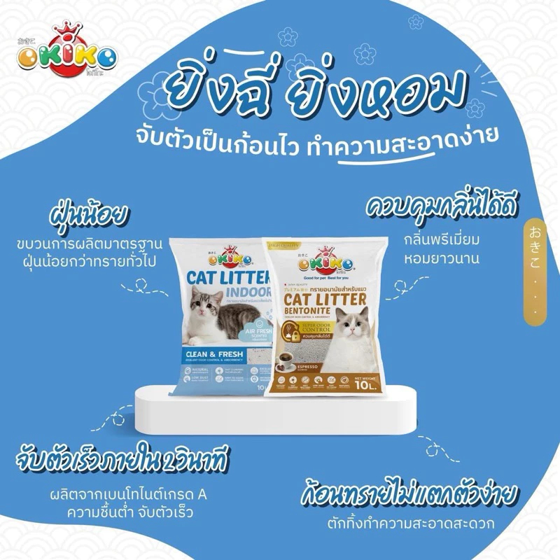Okiko ทรายแมว โอคิโกะ ทรายแมว เกรด พรีเมี่ยม 10 ลิตร - Okiko Cat Litter 10