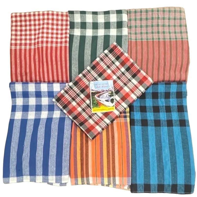 ผ้าขาวม้า ผ้าขาวม้าตรารถไฟ ผ้าขาวม้าเย็บริม ขนาด 80x190cm คละสี คละลาย จำนวน10ผืน ราคาพิเศษ