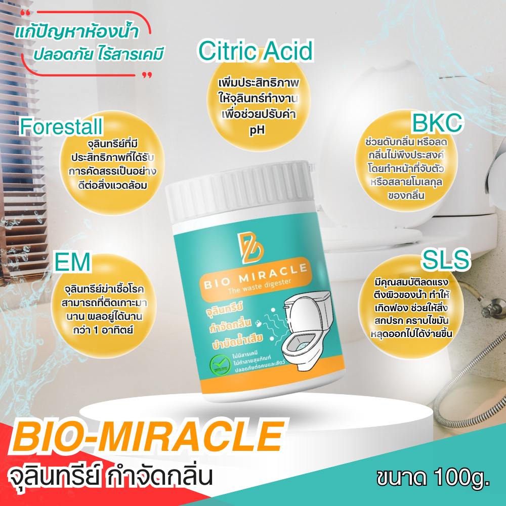 BIO Miracle ไบโอมิราเคิล จุลินทรีย์ดับกลิ่นเหม็นออร์แกนิค กำจัดกลิ่นเหม็น ดับกลิ่นส้วม กำจัดกลิ่นไม่พึงประสงค์ ปลอดภัย