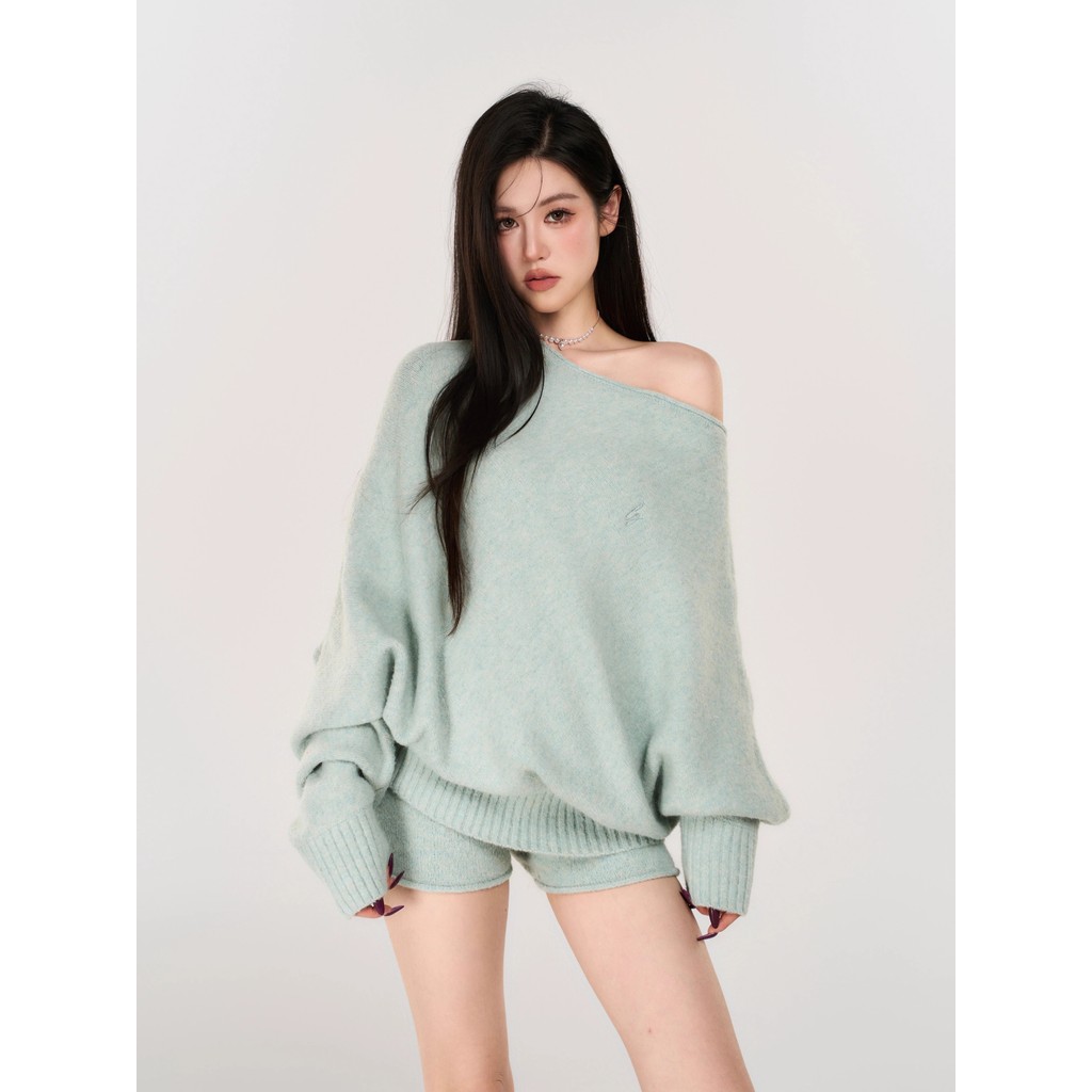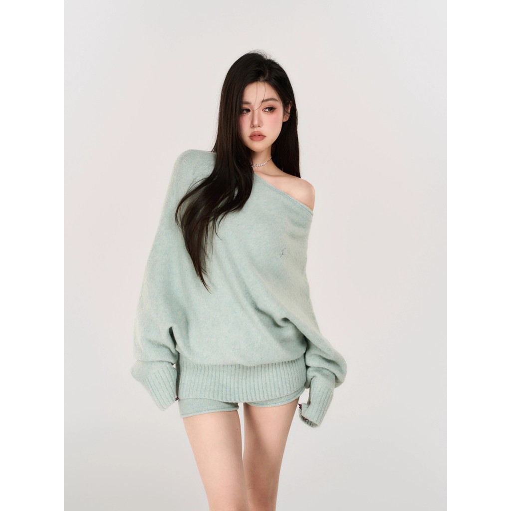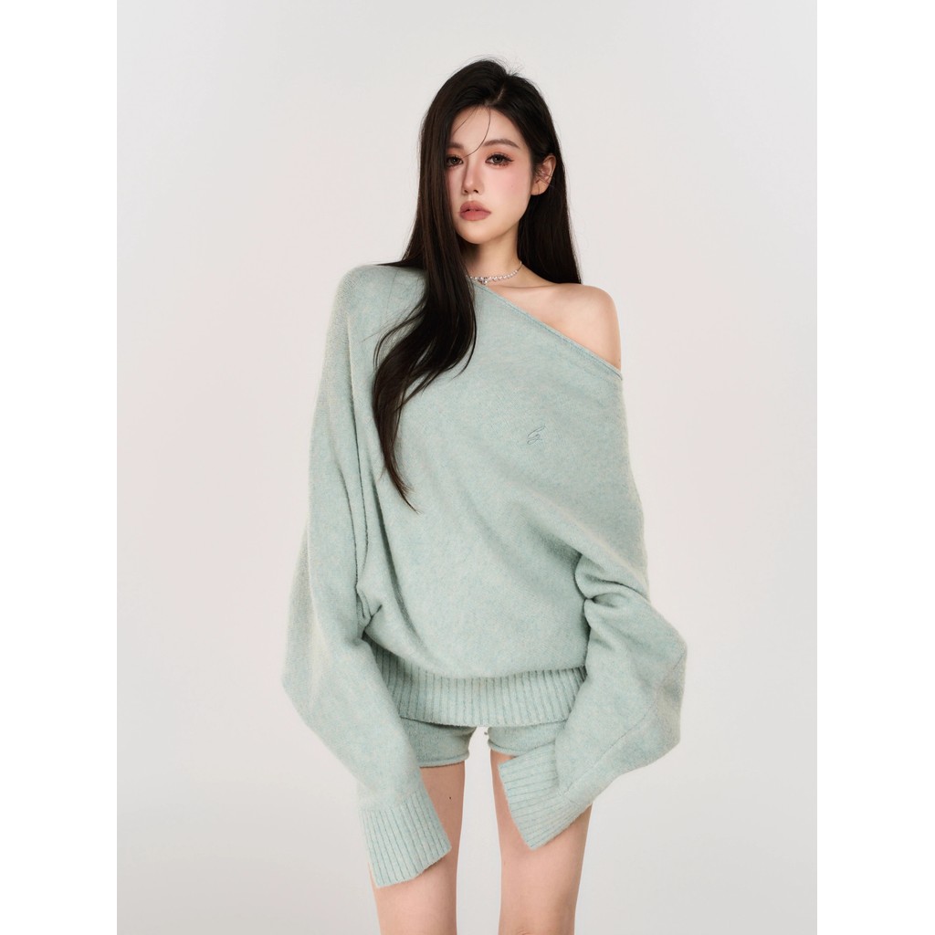 ชุดแขนยาวสีมินต์ไหล่เฉียง สำหรับผู้หญิง ออกแบบให้สวมใส่ง่ายและสบาย เหมาะสำหรับการพักผ่อนหรือเดินทาง