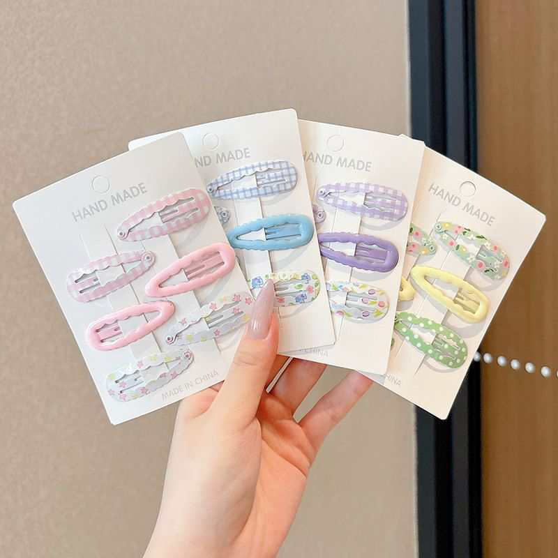 กิ๊บติดผมขอบหยัก 6 ชิ้น/ชุด เครื่องประดับผมน่ารักหวาน สีสันสดใส กิ๊บติดผมเด็กผู้หญิง