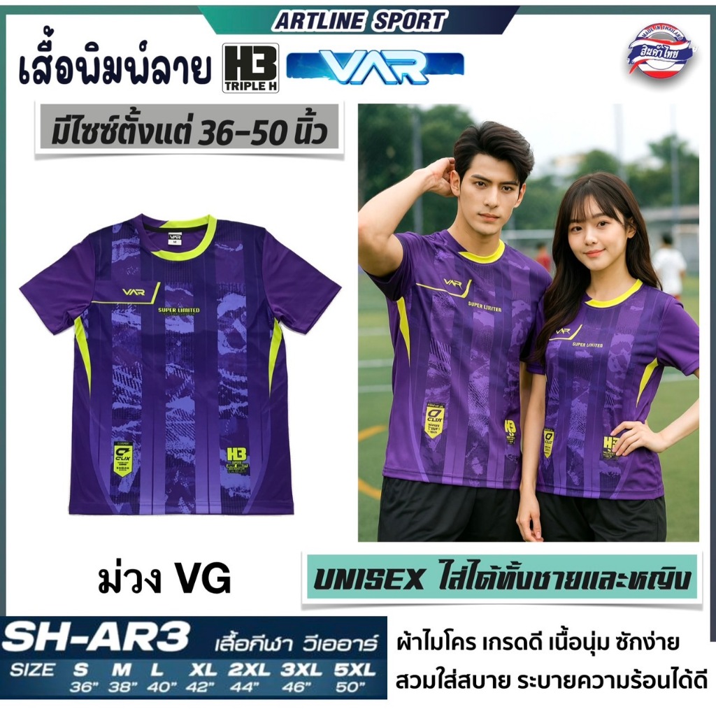 H3 SPORT เสื้อกีฬาพิมพ์ลาย รุ่น VAR-3 By H3. เนื้อนุ่ม ใส่สบาย (สินค้าไทย) - เสื้อกีฬาพิมพ์ลาย รุ่น VAR-3 BY H3 Spo