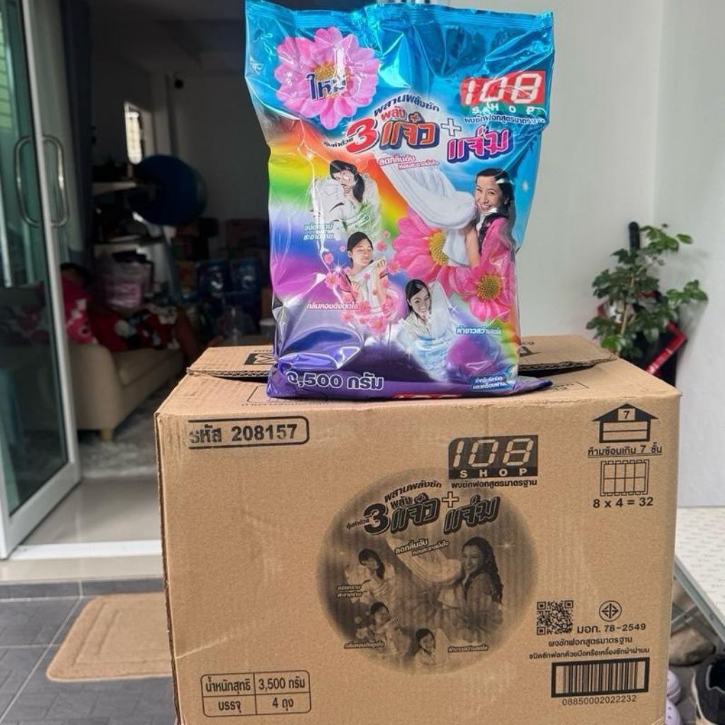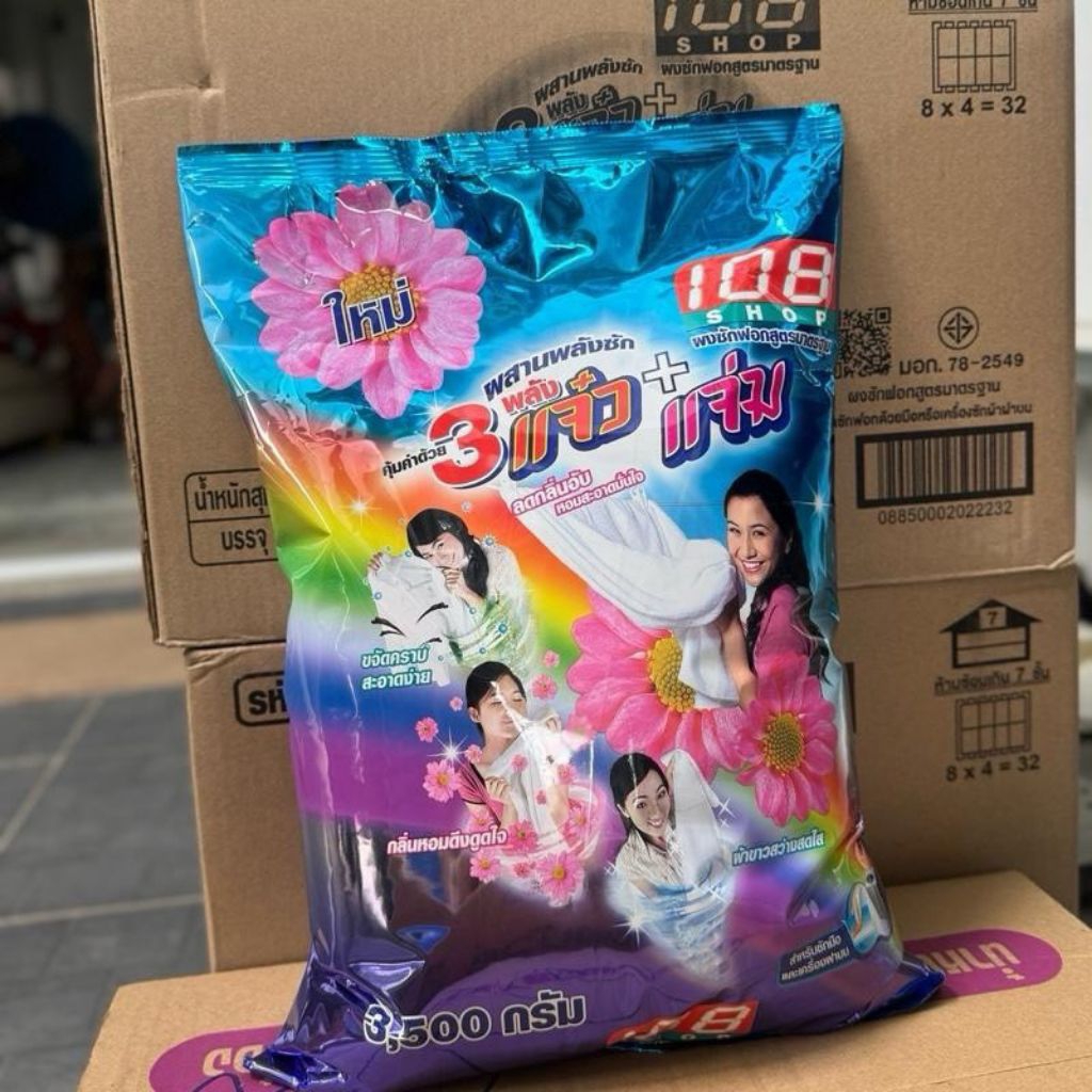 (1ถุง)ผงซักฟอก3พลังแจ๋ว 108shop ขนาด3,500กรัม
