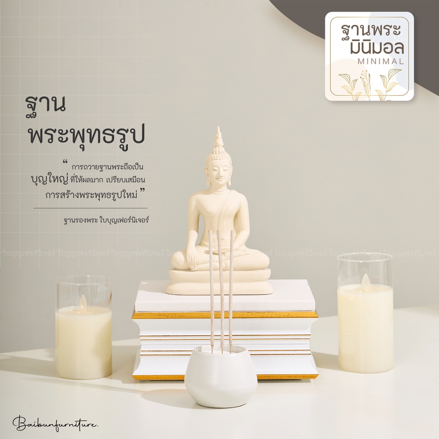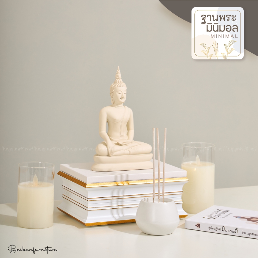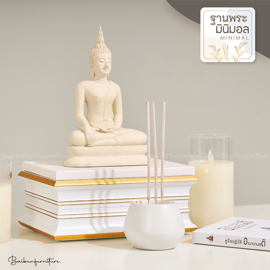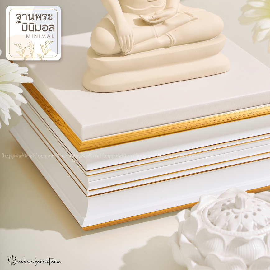 ฐานพระ ขาว-ทอง ใบบุญเฟอร์นิเจอร์ ฐานพระพุทธรูป แท่นวางพระ ฐานรองพระ ฐานพระมินิมอล สูง 4.2 นิ้ว [ B066-7 ]