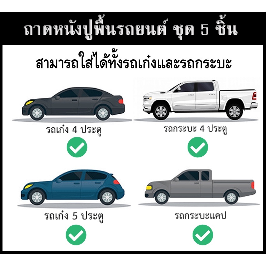 ถาดปูพื้นรถยนต์ 5 ชิ้น เกรดพรีเมี่ยม หนากว่ารุ่นทั่วไป ใส่ได้ทั้งรถเก๋งและรถกระบะ