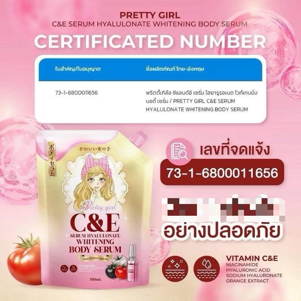 โปร 3 ถุง เซรั่ม Pretty Girl C&E Gluta Body Serum 3 ถุง ขนาด 300ml. พริตตี้เกิล์ล เซรั่มไฮยา