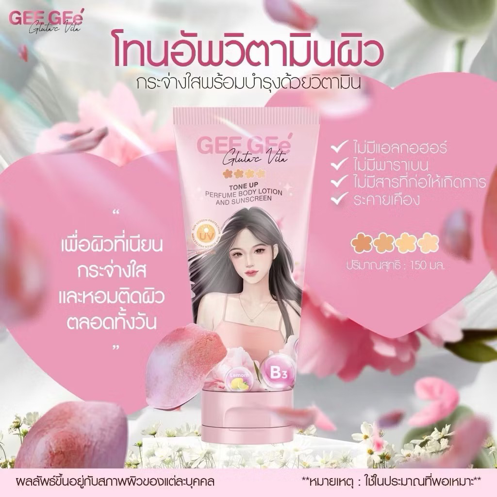 GEE GEe' จีจี้ กลูต้าซีวิตต้าโทนอัพ เฟอร์ฟูม บอดี้โลชั่น แอนด์ซันสกรีน 150ml.