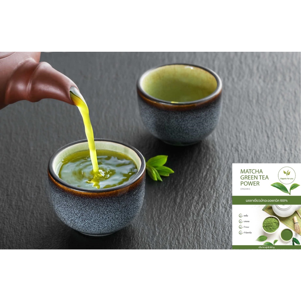 ผงชาเขียวมัทฉะ แถมแก้ว+ช้อน ในราคา 129 บาท ขนาด 100 กรัม/ซอง