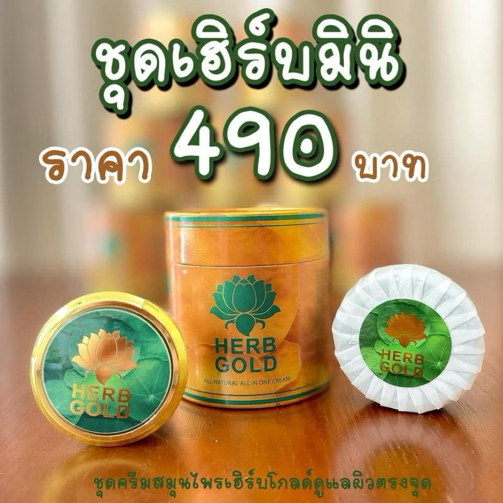 ครีม 10 กรัม สบู่ 1ก้อน HERB Gold เฮิร์บโกลด์ ครีมสมุนไพร (ชุดมินิ ) ขนาดใหม่